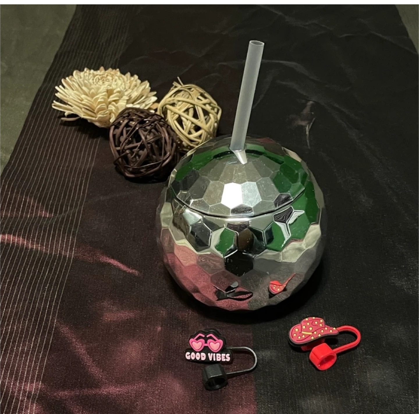 Never used! Add some sparkle to your day with this fun disco ball tumbler! It comes with a straw and two decorative charms to personalize your drinkware. Perfect for parties or just adding a bit of fun to your daily routine