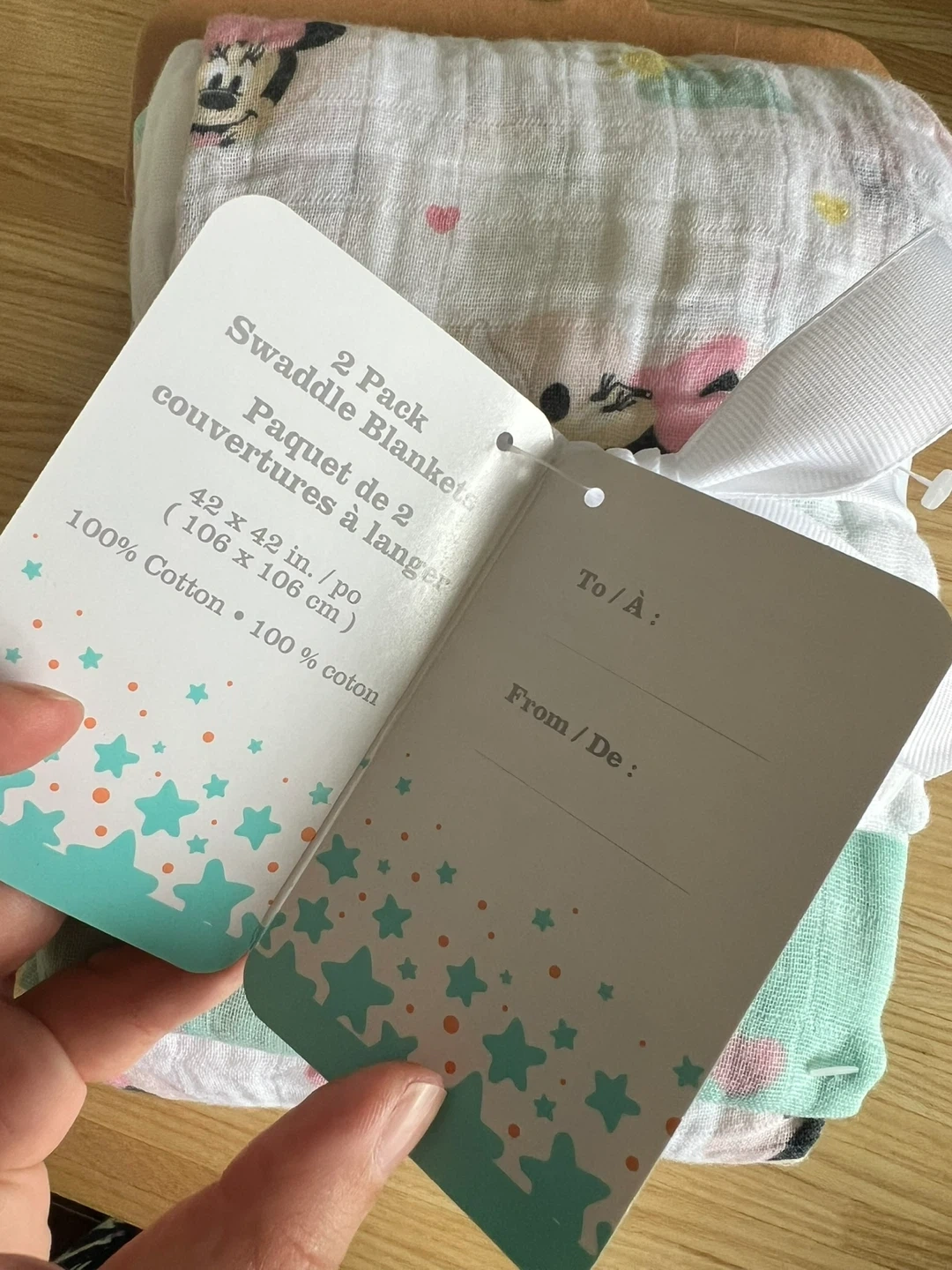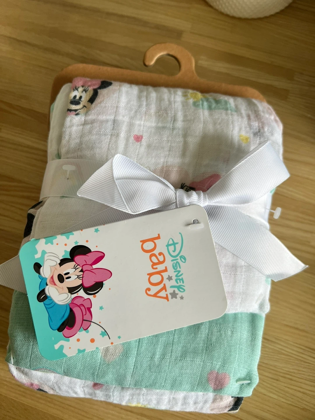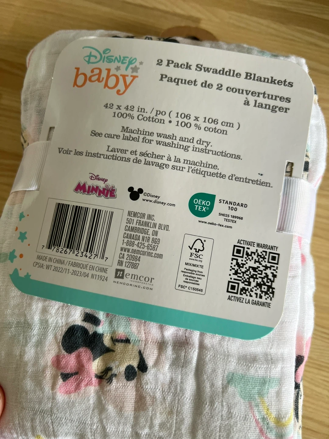 Selling a set of two Disney Baby swaddle blankets featuring Minnie Mouse! They are 42 x 42 inches (106 x 106 cm) and made of 100% cotton. Perfect for your little one!