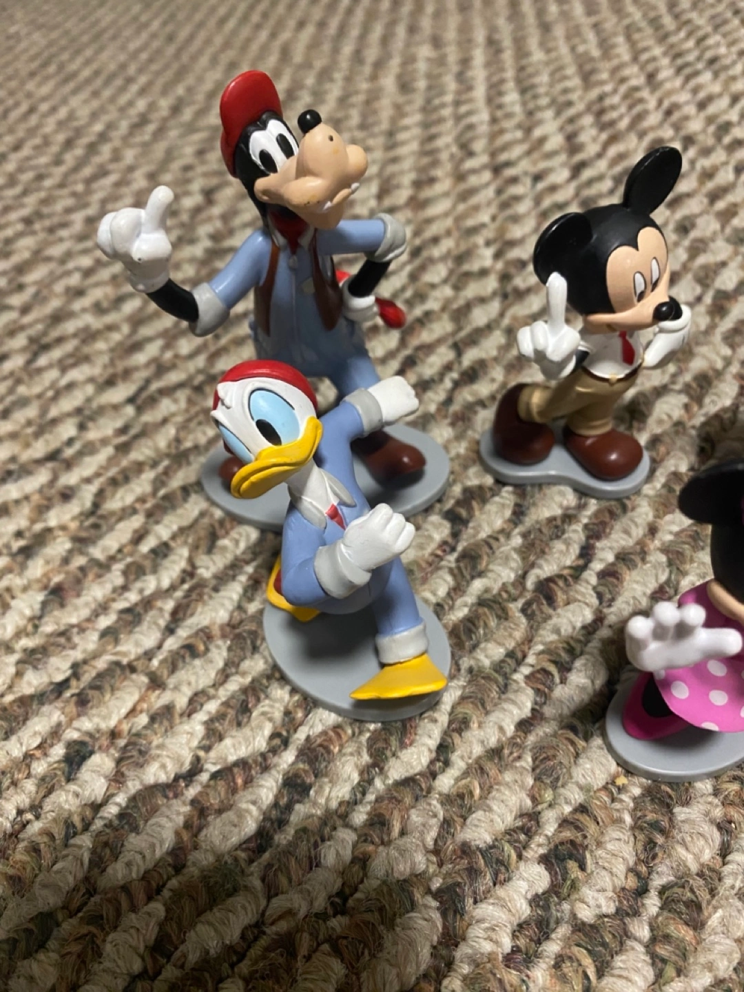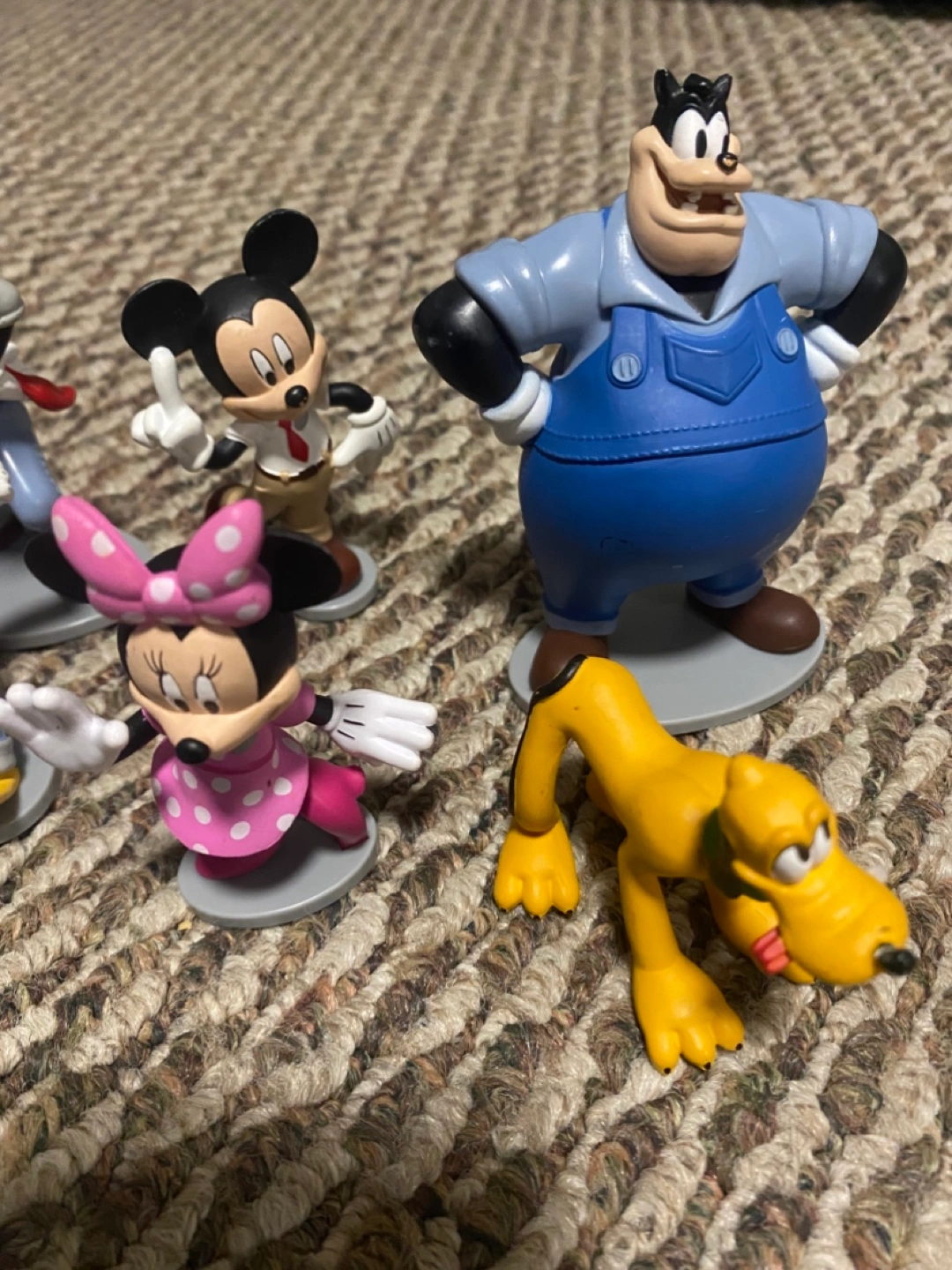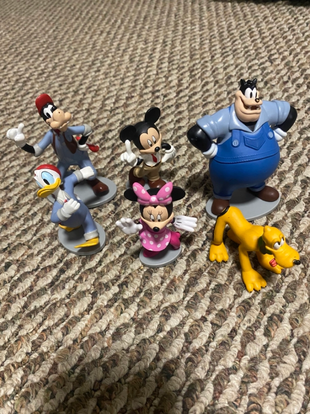 Selling a set of Disney figurines featuring classic characters like Mickey Mouse, Minnie Mouse, Donald Duck, Goofy, Pete, and Pluto. They’re as good as new! These are great for any Disney collector or as toys for kids! Willing to negotiate on the price!