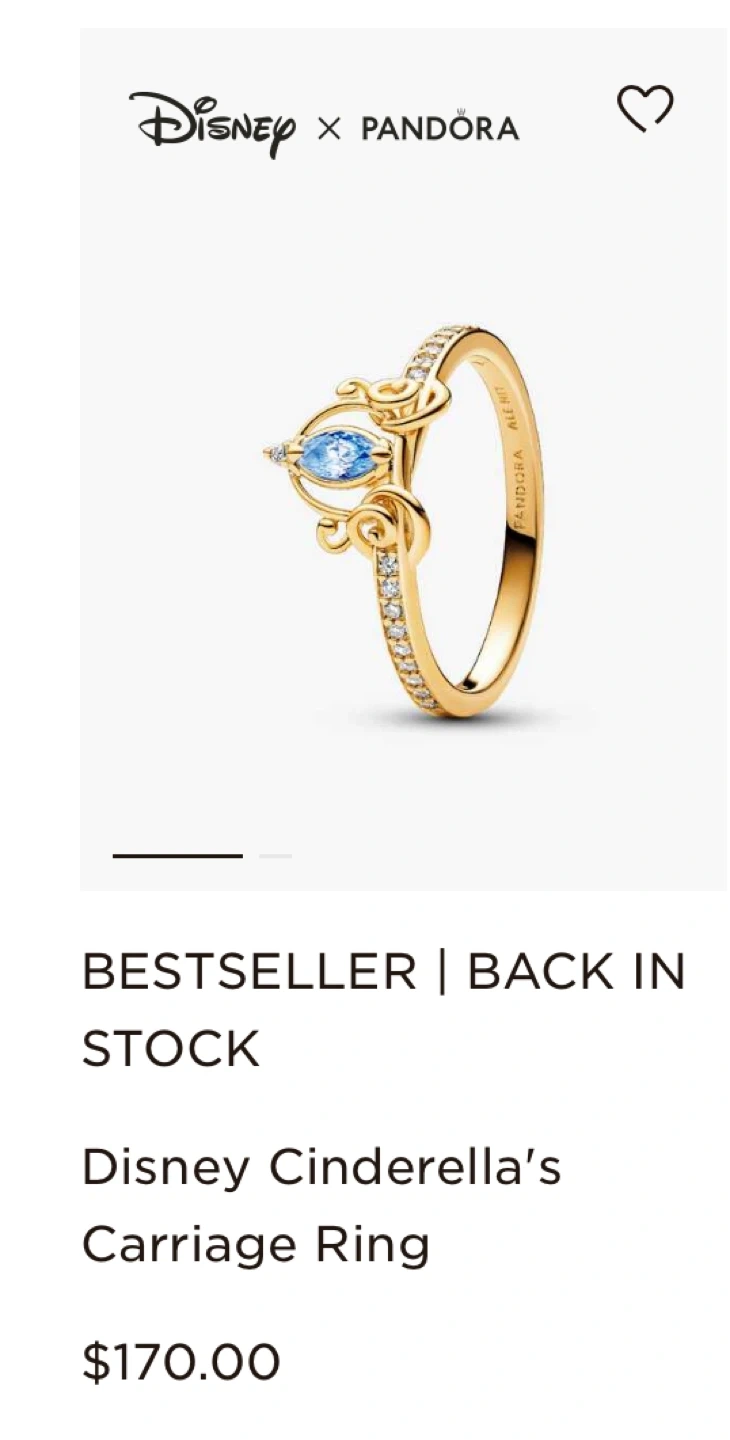 Selling a beautiful Disney Cinderella Carriage ring from Pandora! It comes with the original box. Originally bought for $170