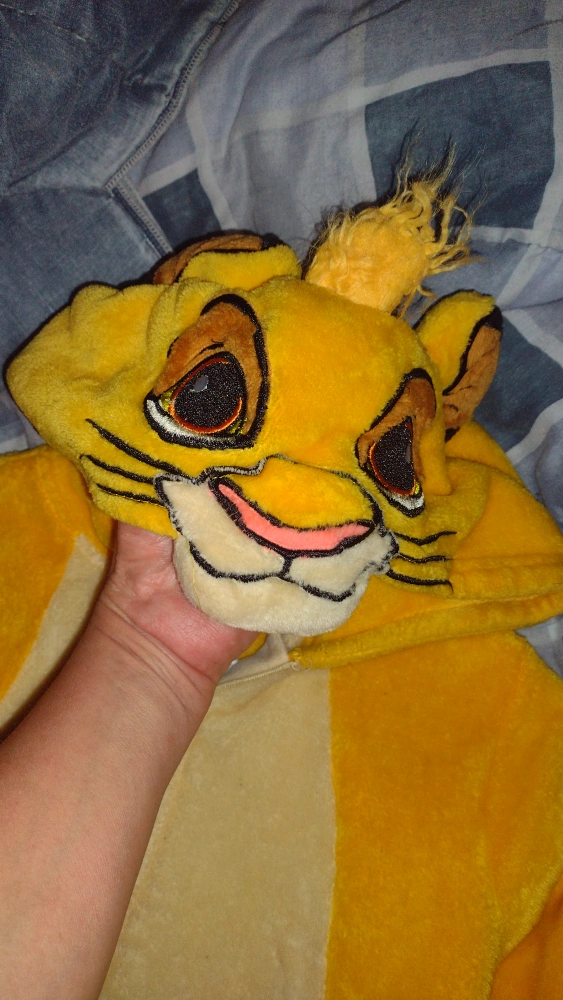 Cozy up with this adorable Disney Lion King Simba onesie! It's a size Large (10-12) and made of 100% polyester, making it super soft and comfy. Perfect for dress-up or lounging around the house!