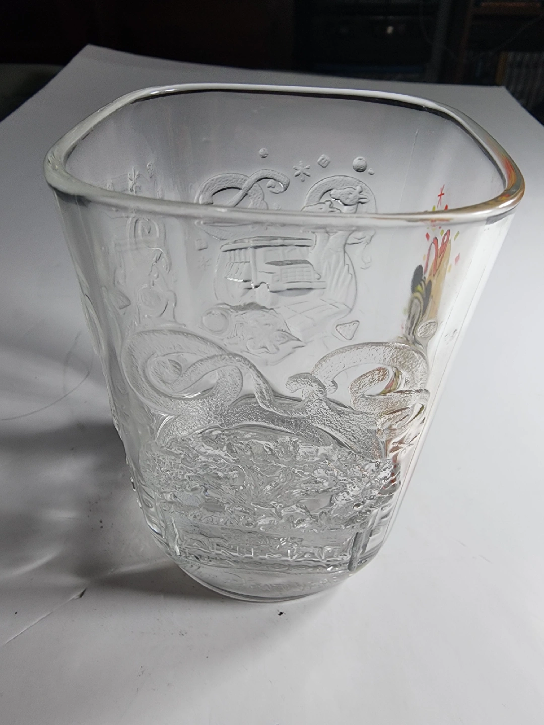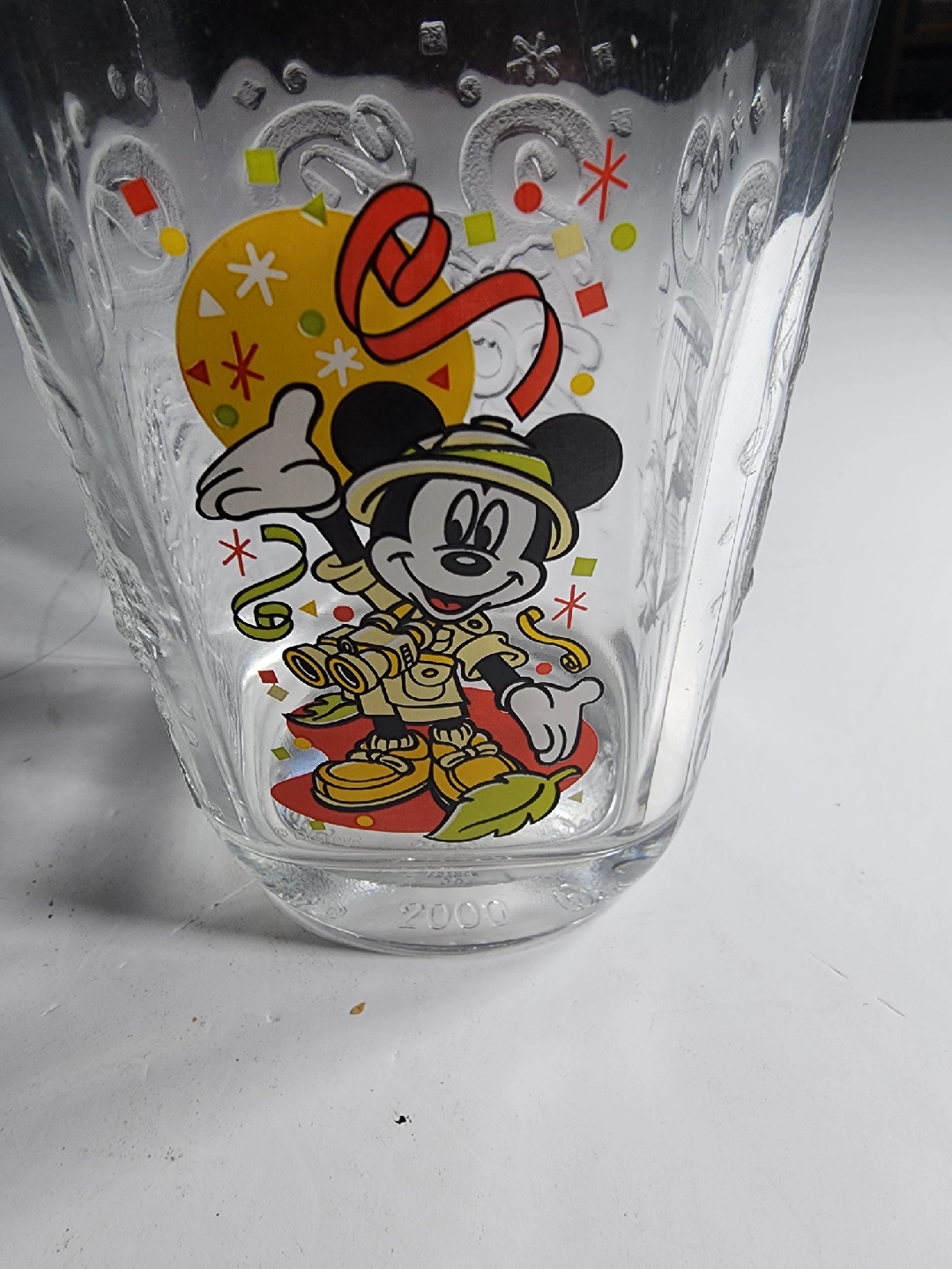 Selling a Disney Mickey Mouse celebration glass from the year 2000! It features a fun design with Mickey and celebratory details etched into the glass