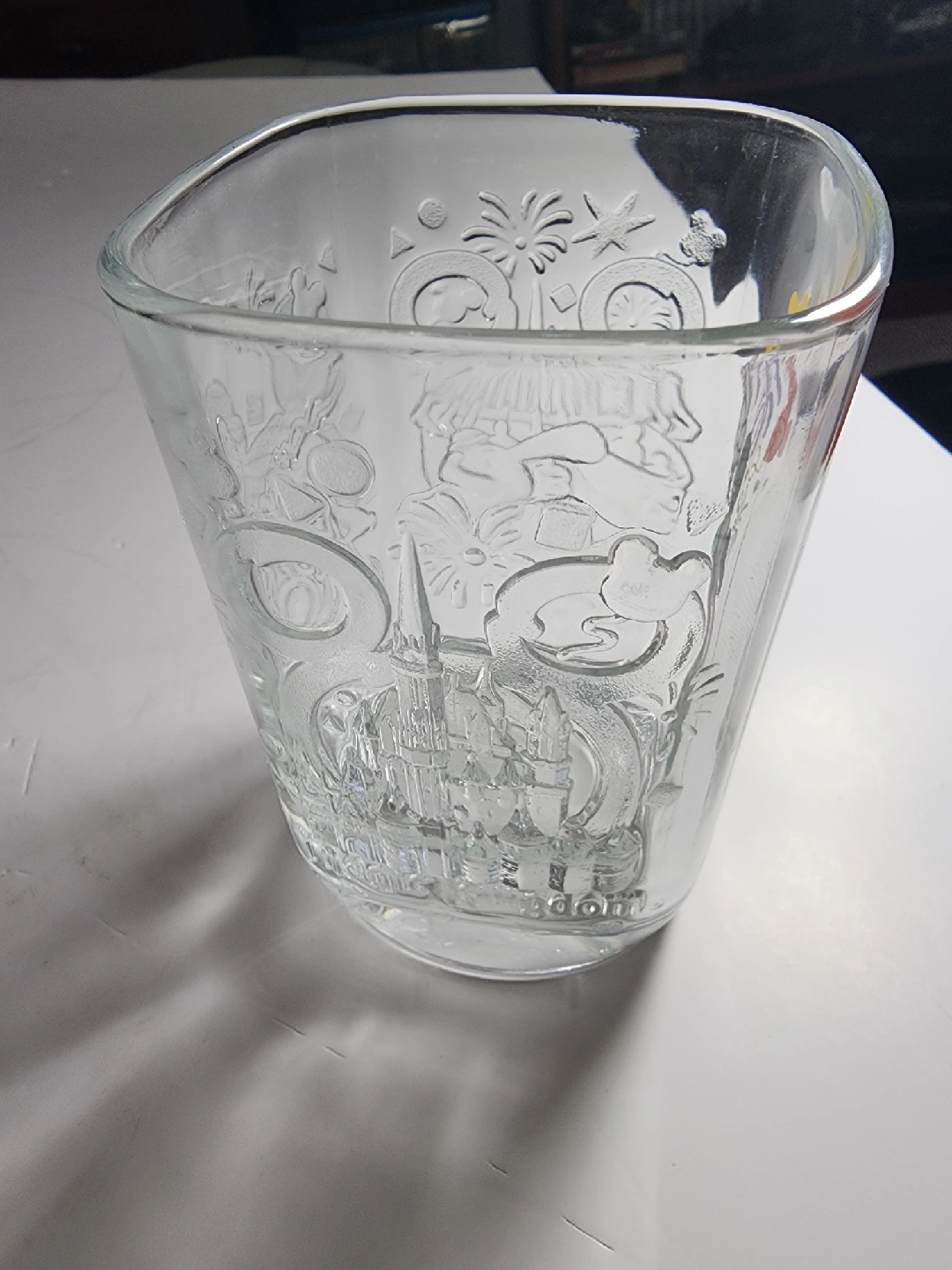 Selling a Disney Mickey Mouse glass. It's in great condition and features a fun Mickey Mouse design. Perfect for Disney fans!