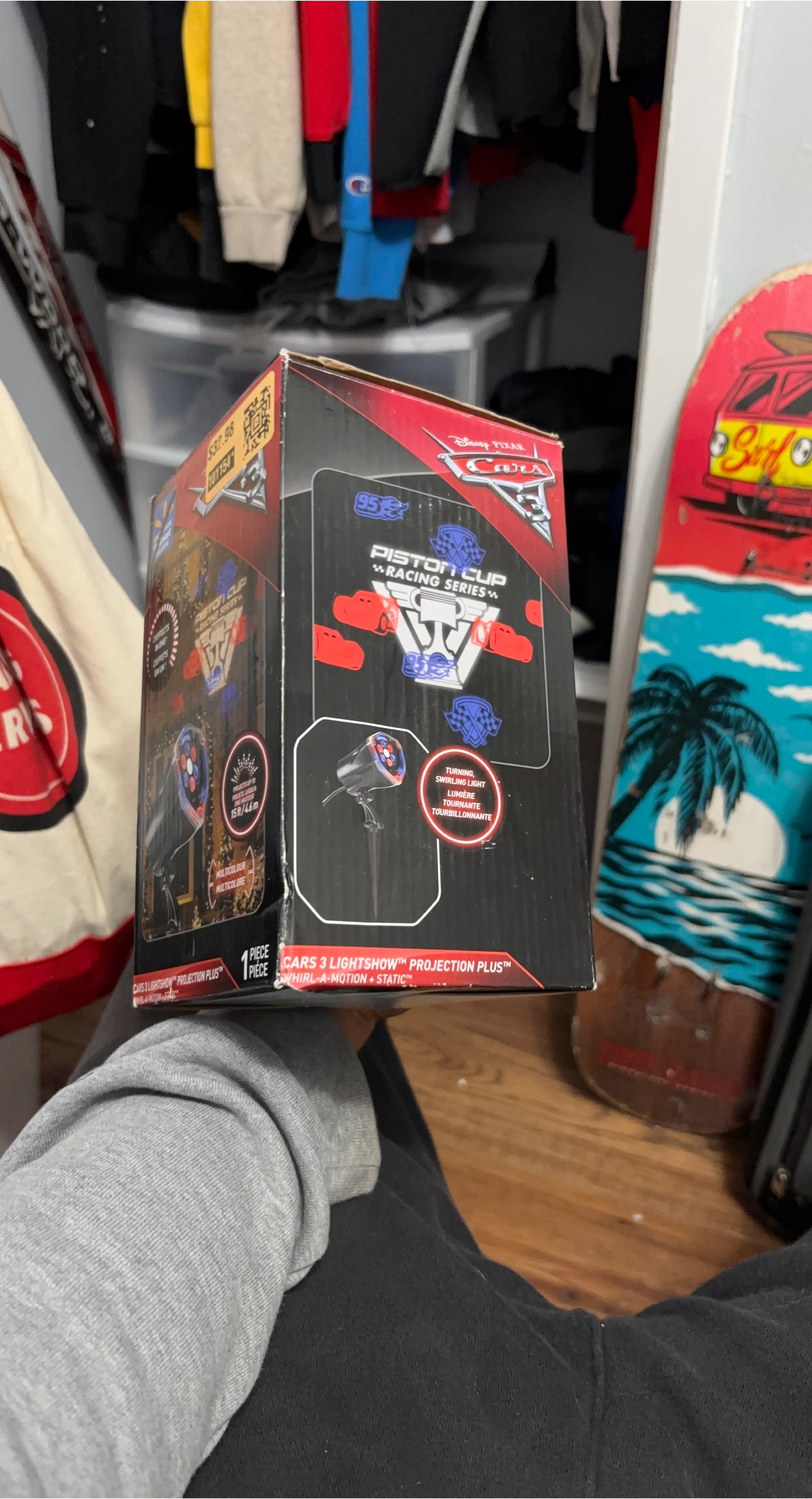 Selling a Disney Pixar Cars 3 Lightshow Projection Plus! It features a turning, swirling light with multicolour options. The projection distance is up to 15 ft / 4.6 m. Originally priced at $32.98.