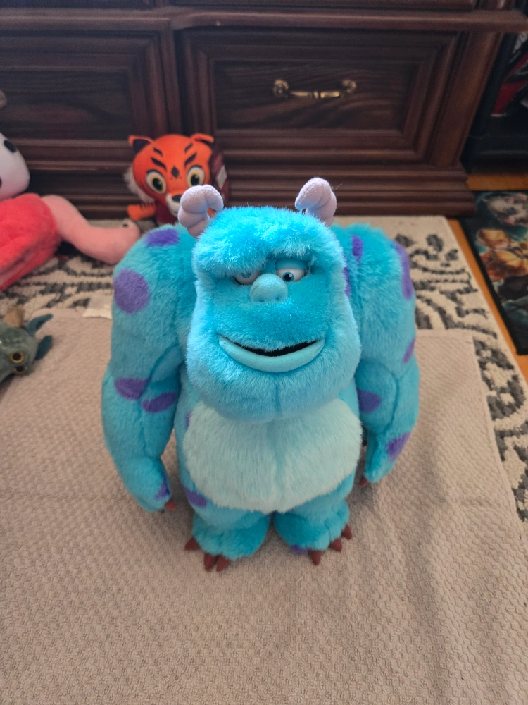 Selling a Sully plush from Disney Pixar's Monsters Inc! It's in great condition and ready for a new home. This cuddly blue monster with purple spots is sure to bring a smile to any fan of the movie