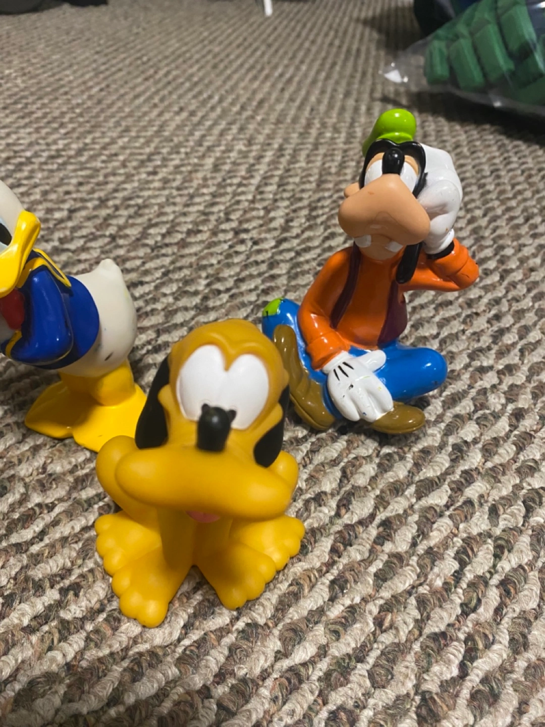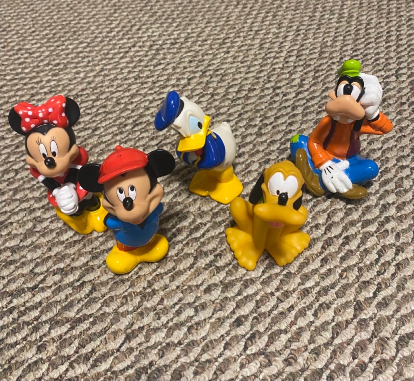 Selling a set of Disney PVC figures featuring Mickey Mouse, Minnie Mouse, Donald Duck, Goofy, and Pluto! These figures are in great shape and would make a fun addition to any Disney collection