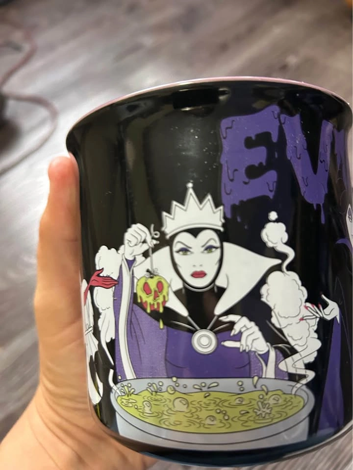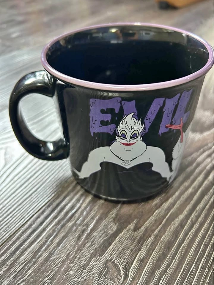 4”x4” 20oz Ceramic mug of 4 evil characters from Disney: Ursula, Cruella, the evil queen, and Malificent. Dishwasher and microwave safe. Cash or e-transfer only. Sorry, no refunds. Payment to be made at pick up. Pick up place is the A&W 200st Langley.