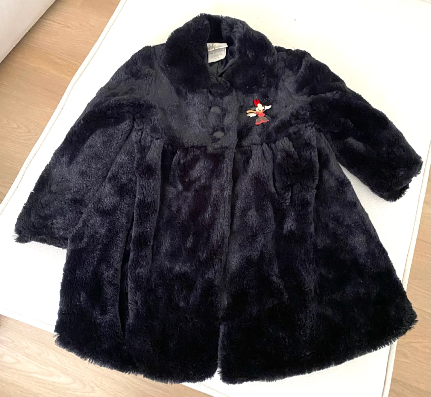 A cute black faux fur coat for child size 5/6 from the Disney Store! This adorable gently used clean ready-to-wear coat features a Minnie Mouse pin and is perfect for keeping your little one warm and stylish. Makes a great gift! PICKUP ONLY Cash only