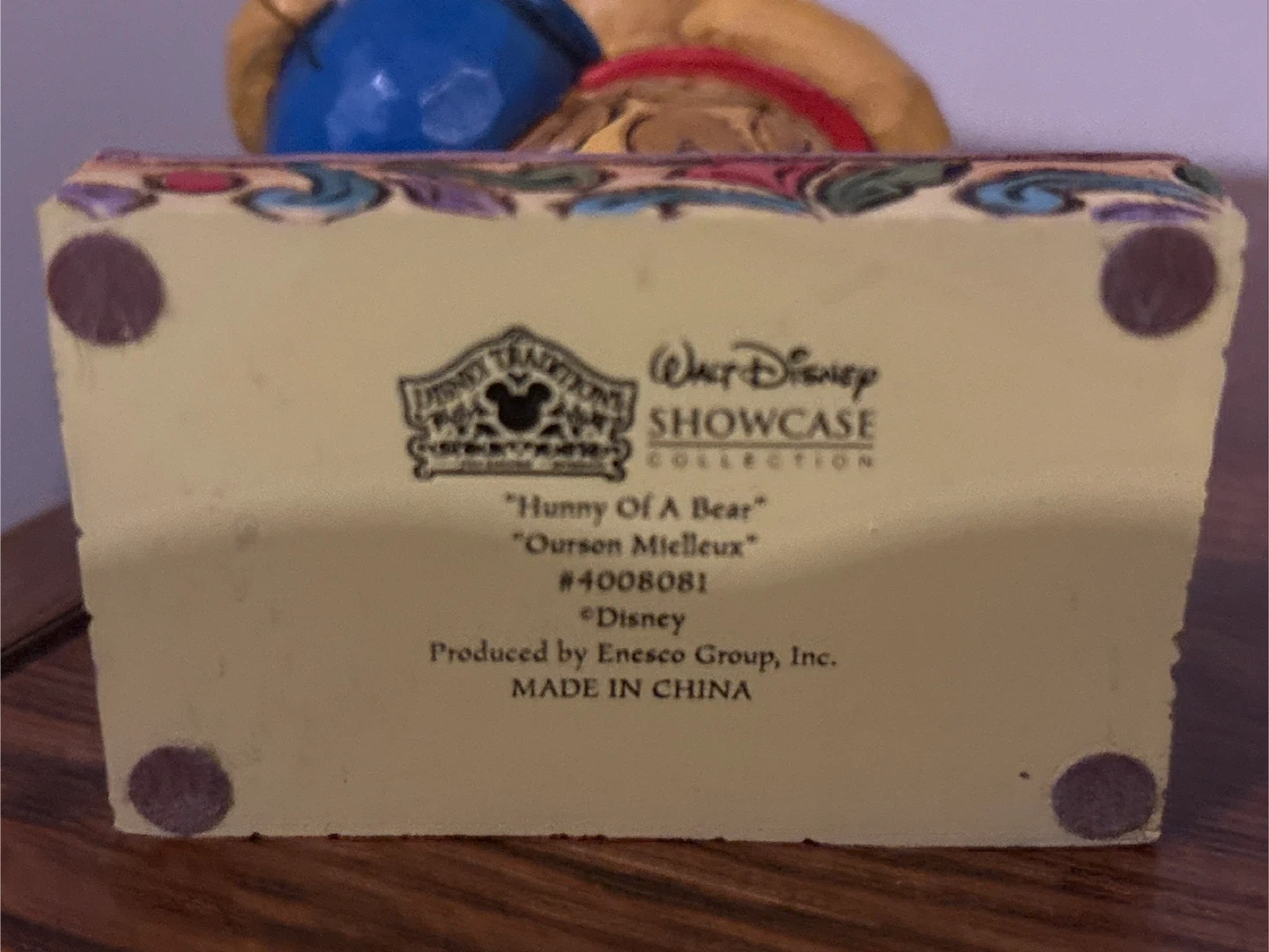 Selling a Disney Traditions Winnie the Pooh figurine, titled "Hunny Of A Bear" by Ourson Mielleux. It's a part of the Walt Disney Showcase Collection with the number #4008081. This adorable figurine is produced by Enesco Group, Inc