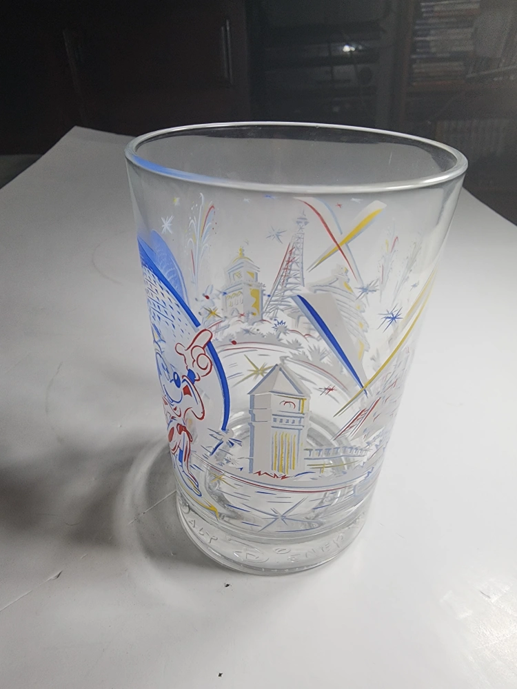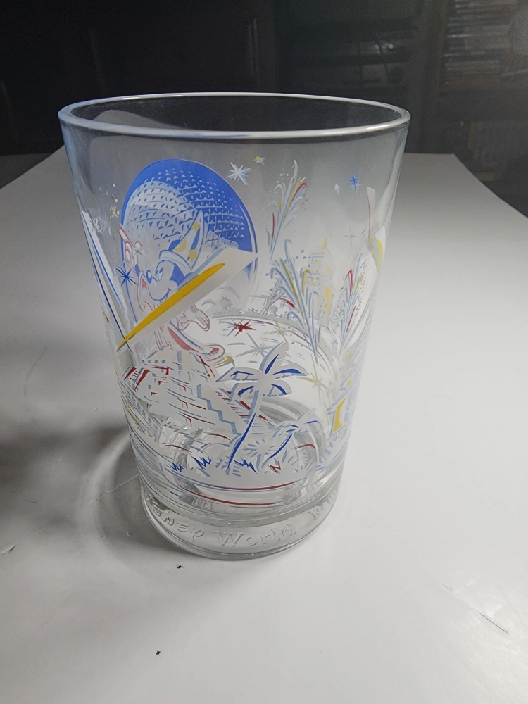 Selling a Disney World 50th Anniversary glass. It has a fun design featuring Mickey Mouse and iconic landmarks from the park. Great for any Disney collector!