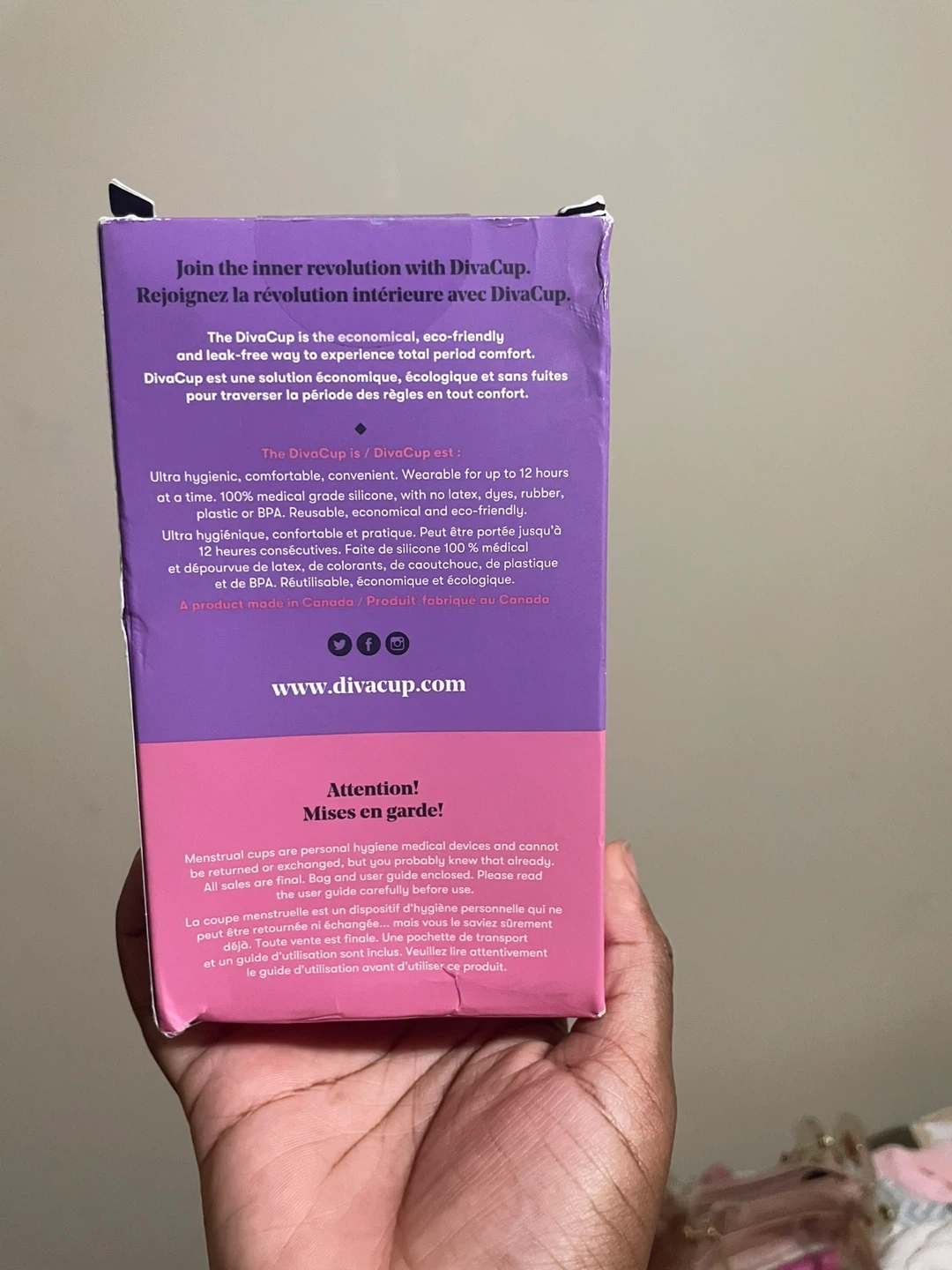 Selling a DivaCup menstrual cup, Model 1. -Untouched but damaged box, menstrual cup is still in great condition- This model is recommended for those between 19 and 30 years old who have a medium menstrual flow. It's an economical, eco-friendly, and leak-free way to experience total period comfort. The DivaCup is made of 100% medical grade silicone and is wearable for up to 12 hours at a time