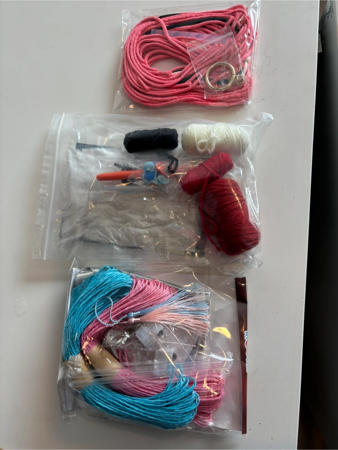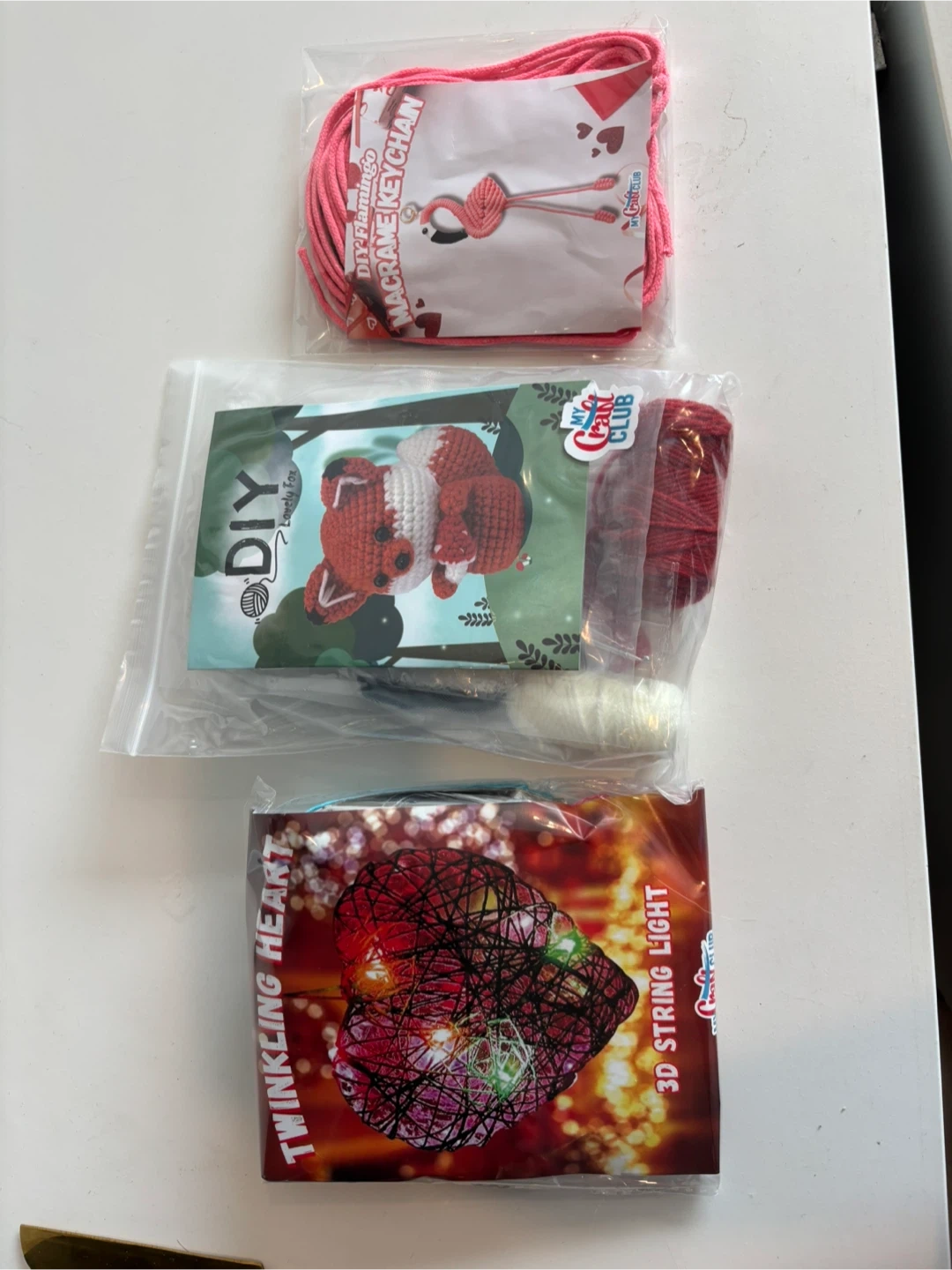 I'm selling three unopened DIY craft kits! - DIY Flamingo Macrame Keychain - DIY Crochet Kit - Twinkling Heart 3D String Light Kit All kits come with the materials and instructions needed to complete the project 15 dollars each