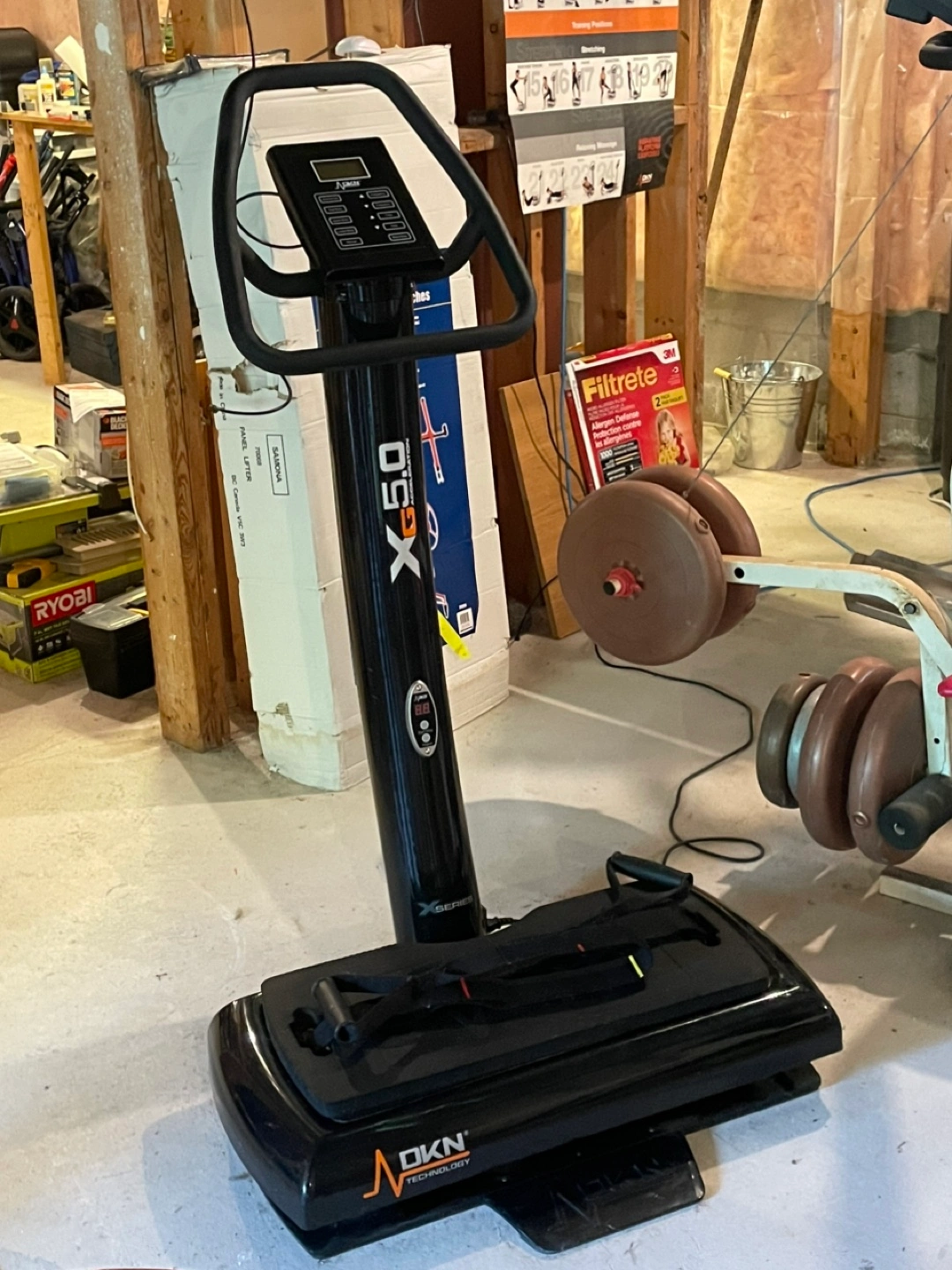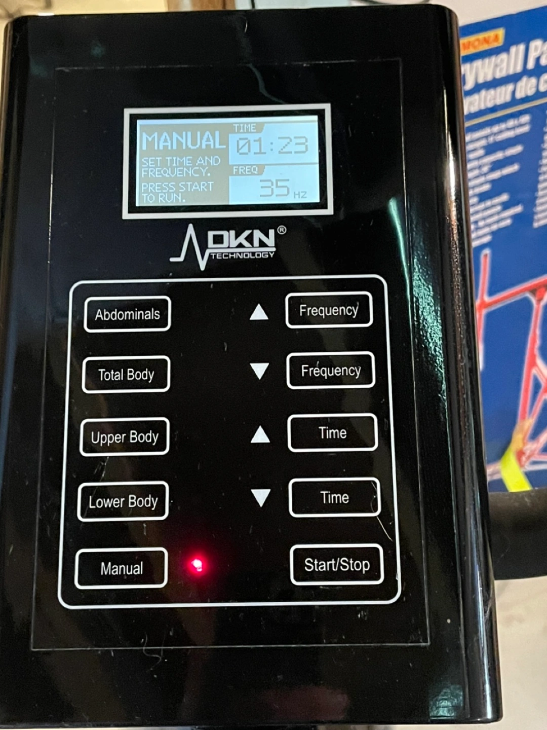 Selling a DKN Technology XG5.0 Acceleration vibration machine. It features a control panel with settings for abdominals, total body, upper body, lower body, and manual modes. You can also adjust the frequency and time. It's a great way to add some variety to your workout routine