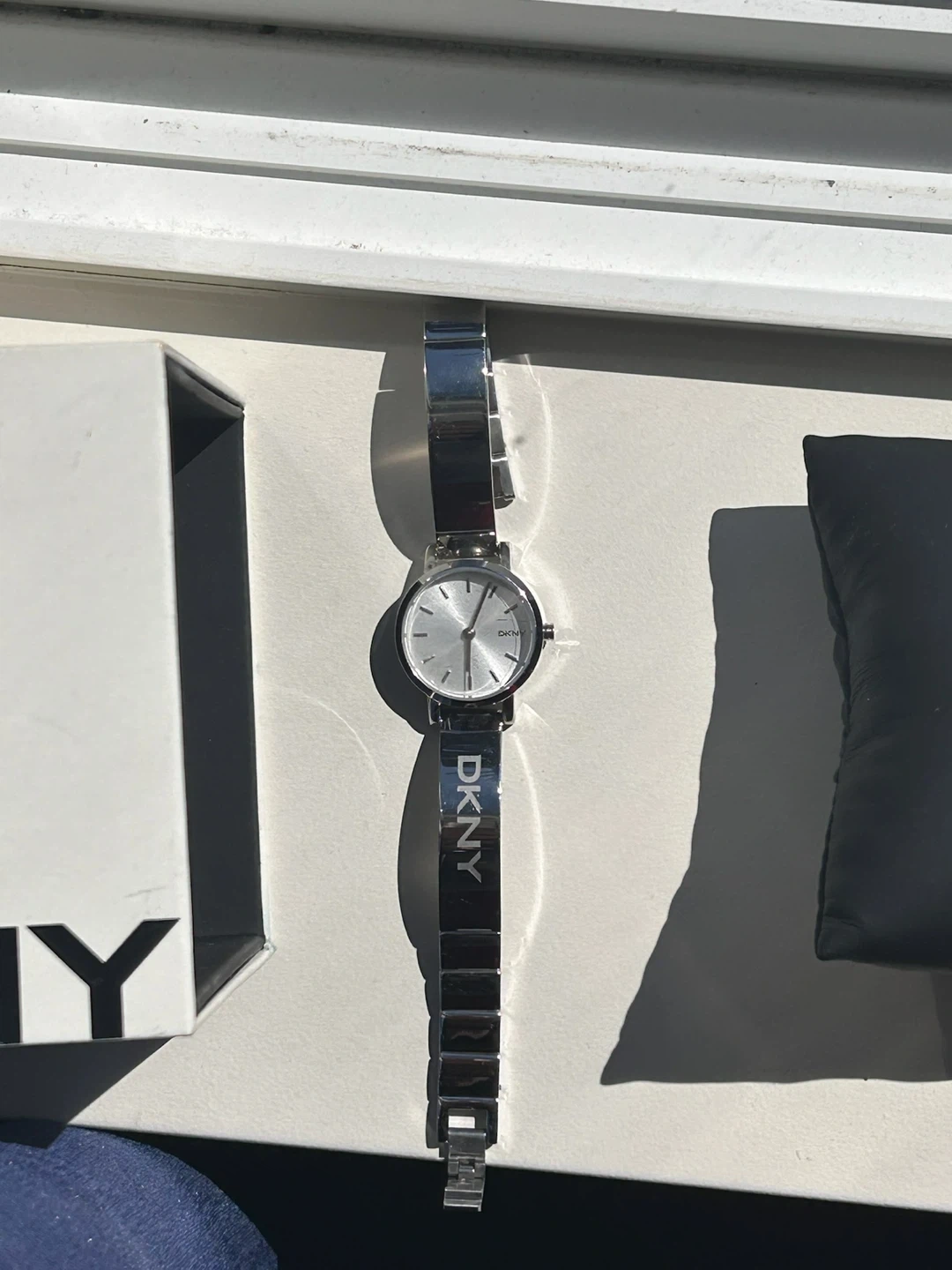 Selling a DKNY women's watch in silver! It comes with its original box. The watch has a sleek, minimalist design. It's in great condition and ready to wear! Good Condition. Door Pickup Only off Barnet Highway. First Come First Serve. Won’t reply to lowballs.