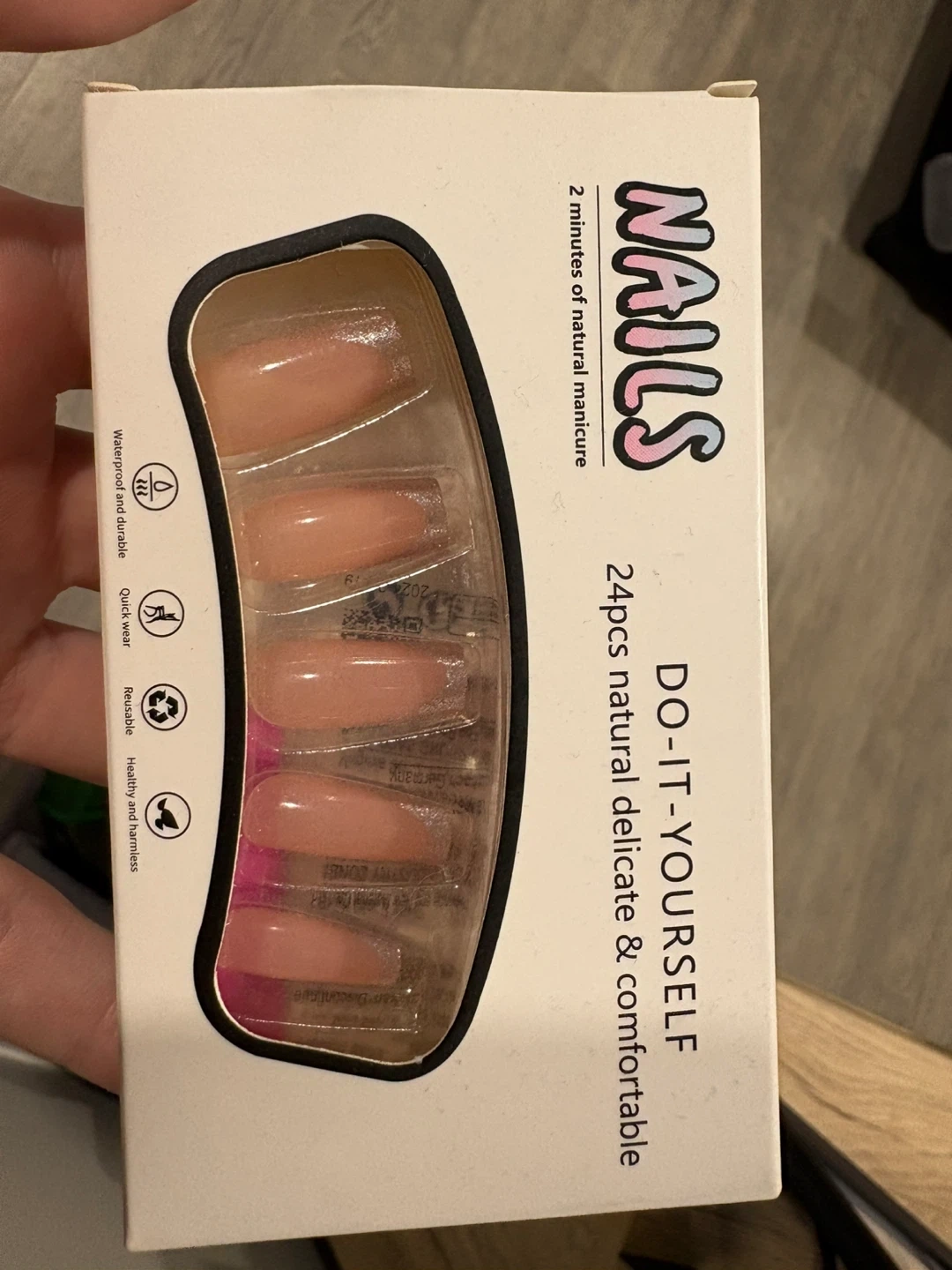 Selling a set of Do-It-Yourself nails! This set includes 24 pieces of natural, delicate, and comfortable nails for a quick and easy manicure. They are waterproof, durable, and healthy