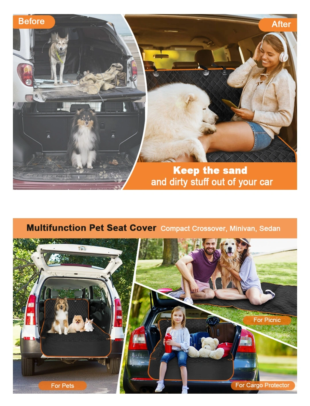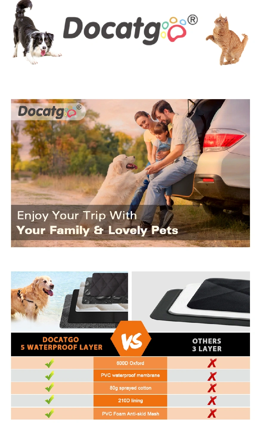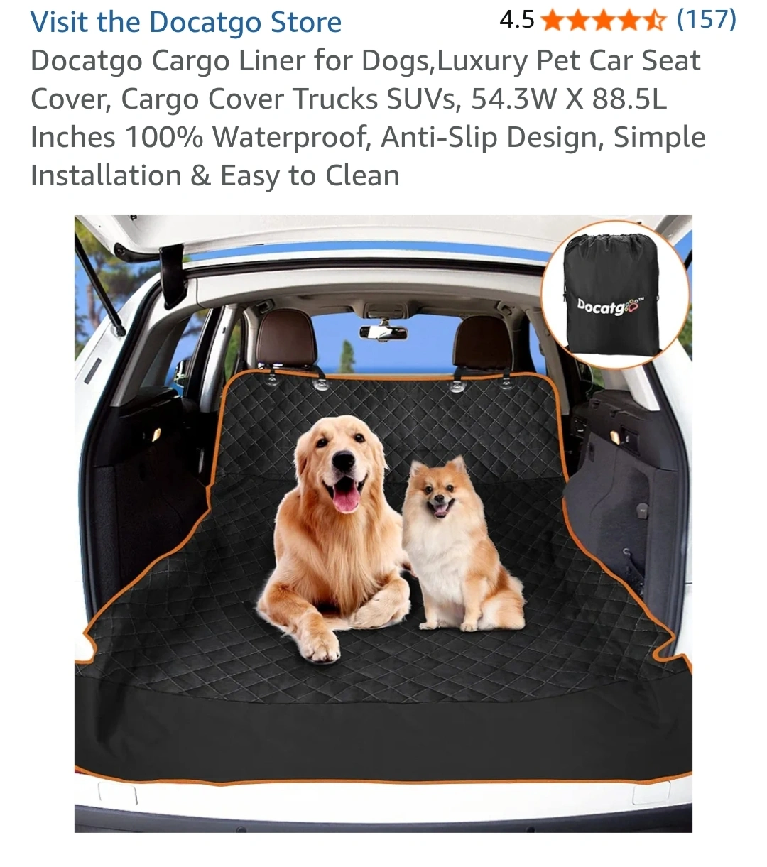 Selling a Docatgo Luxury Cargo Liner. It looks very nice & good quality. Never used. Originally bought on Amazon for $45.99 https://a.co/d/6qj8kw2 Fit All Size of SUVs :54.3"W x 88.5"L dog cargo cover specially designed to fit all size suv. Best for standard/midsize/large SUVs(RAV4, Audi Q7, BMW X5, Jeep Cherokee, Ford Escape, Land Rover Range Rover, Ford Expedition). 100% WATERPROOF & DURABLE : The luxury dog seat cover is made of heavy-duty and 100% water-resistant oxford fabric material. Totally protect your cargo area from liquids, scratches, claws, hair & fur, or other dirts. Waterproof, tearproof & extremely sturdy, including bumper protection and side protection: The dog car seat cover protects not only your trunk from wet, scratches & dirt, but also the bumper when loading or boarding a dog! Easy to install and remove, you can install and remove the dog cargo liner easily within 3 minutes. With the double adjustable straps, you can adjust the straps to fix your car. In order to ensure the durability of Velcro, please make the car trunk clean and dry before using. Simple buckle the straps around the headrest of the back seat and drape cover across cargo space. Available in a non-hammock or hammock configuration, and you can easily clean it up with a damp cloth.