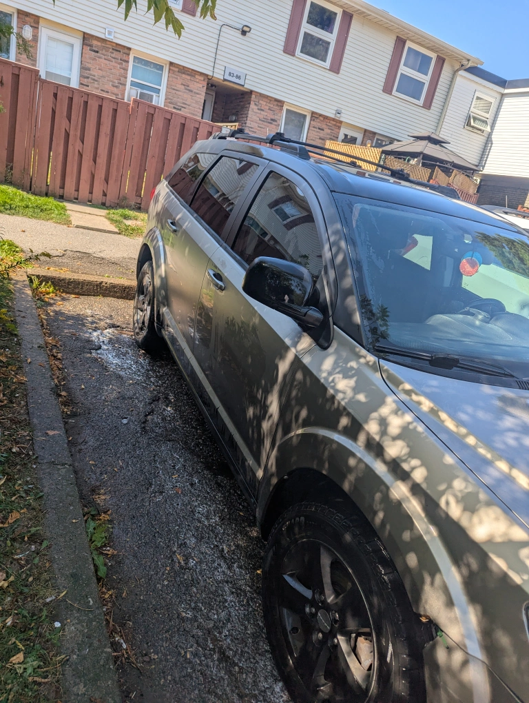 Selling a Dodge Journey. It has a no driving issues that I know of. I've had it for 2 years suddenly because I just purchased a new vehicle so I no longer need it. it's a seven seater V6 and the pictures. I just washed it and cleaned it. found some photos you can see. it's still wet. the car is wrapped. I bought it wrapped. you can remove it if you wish. is push button start fully loaded? good family car with all season tires on it that still have another 2 years I believe . front bumper does have some damage. not from an accident just from it getting pulled off from parking too close to the curb