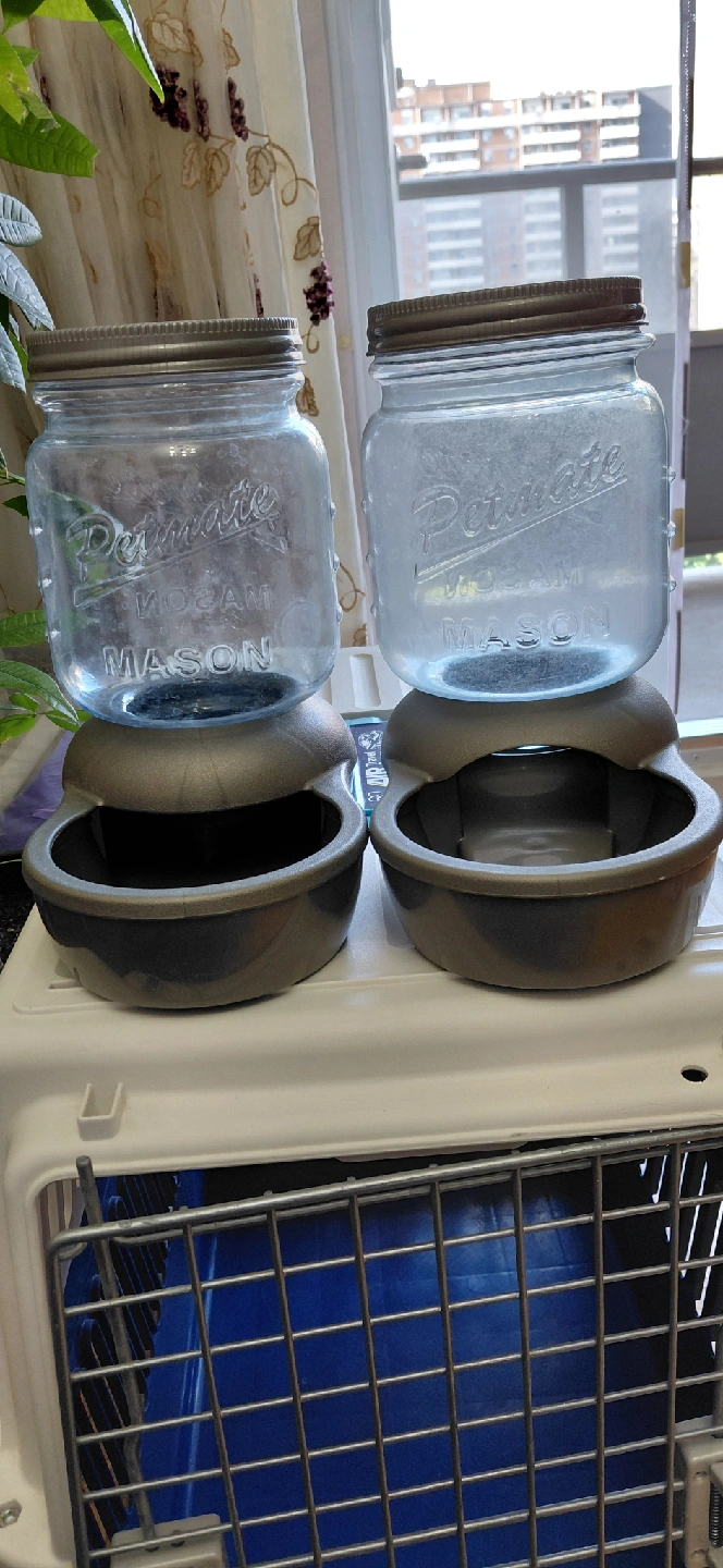 Selling a collection of pet-related items including a dog carrier, mason jars, dog bowls, and a poop bags. All items are in good condition and ready for a new home! •carrier $25 size65cm(W)×45cm(L)×50(H) *Used only once almost new •pet mate Mason jar replenish water/Feeder $5 •PAWZ Rubber Dog Boots $8 - Medium 12per pack - small size 4ea