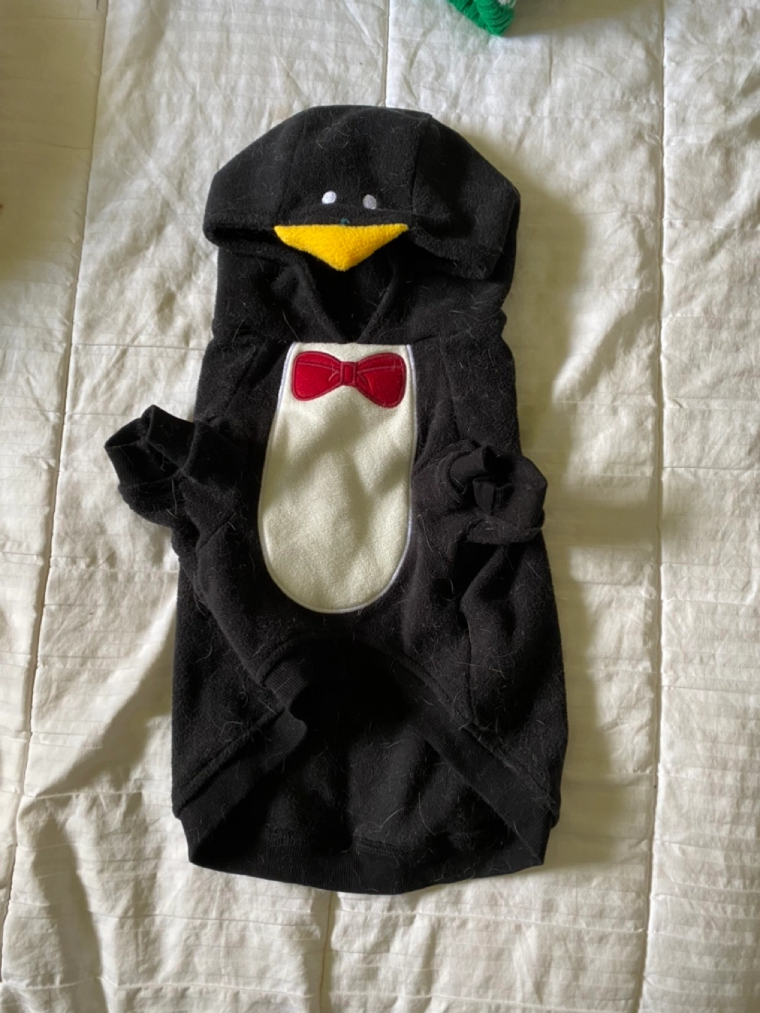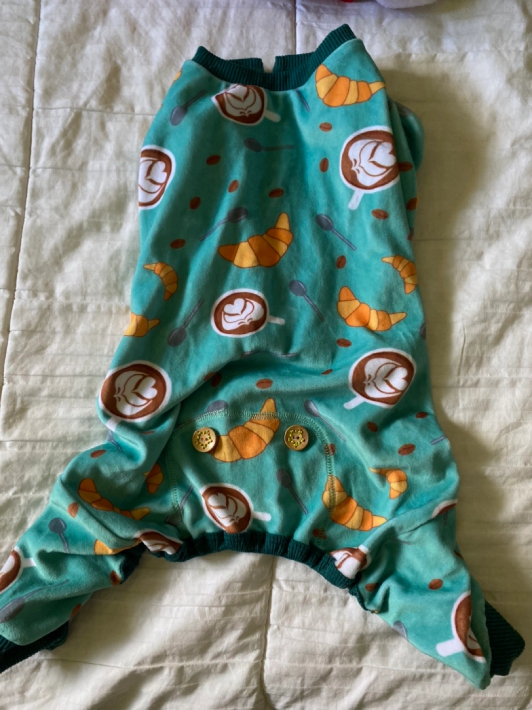 Selling a bundle of dog clothes! Includes a cute coffee & croissant pajama, a Santa costume, bat wings, a rain coat, and a reindeer sweater. Perfect for keeping your furry friend cozy and stylish! Will fit cat to small dog