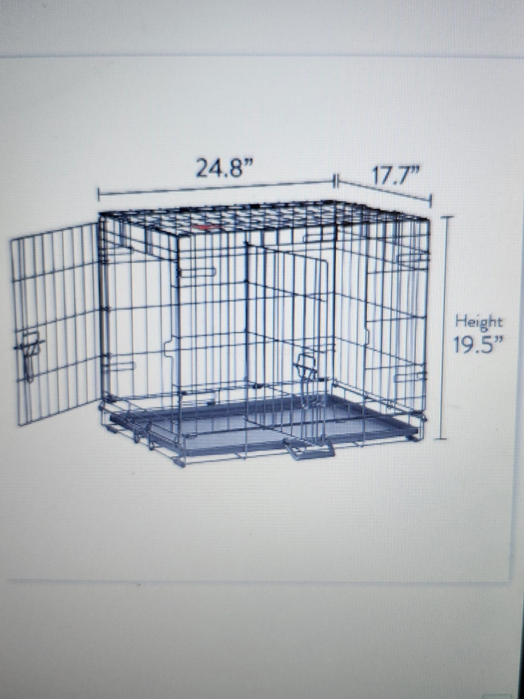 Selling a dog crate, perfect for small to medium-sized dogs! The dimensions are 24.8 inches in length, 17.7 inches in width, and 19.5 inches in height. It's in good condition some discolored spots , ready for a new furry friend