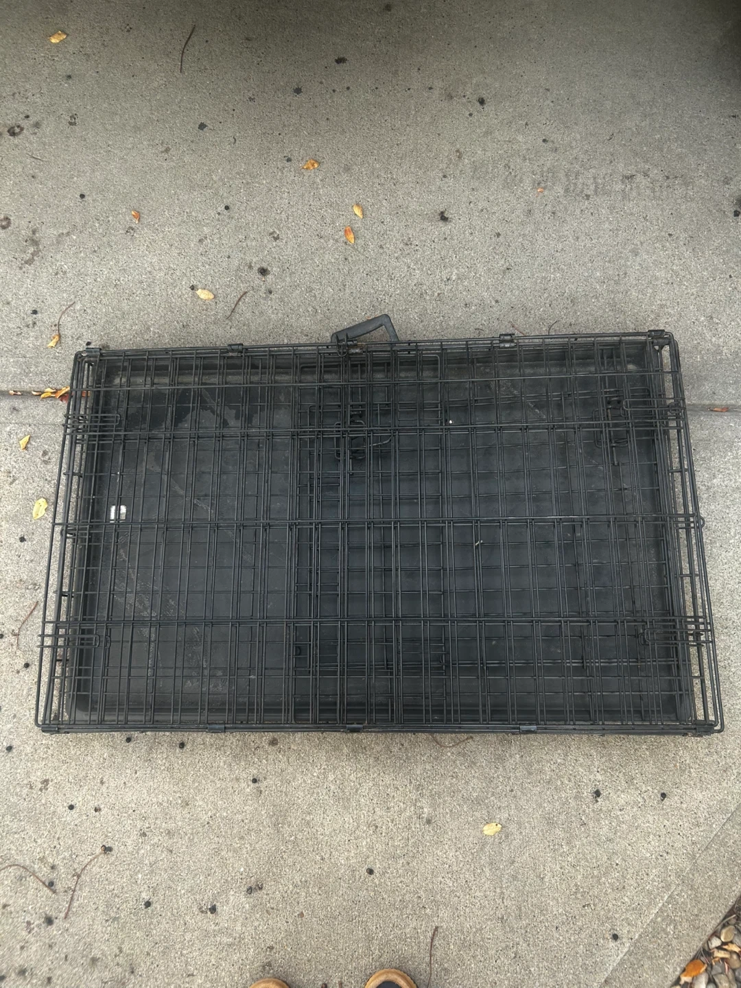 Selling a gently used black dog crate. It's in good condition and perfect for your furry friend! It's a great way to keep your dog safe and secure, whether you're at home or on the go