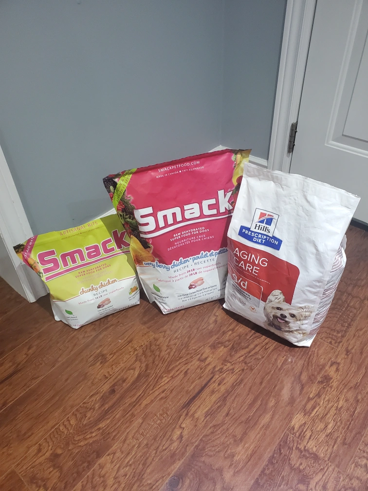 unfortunately we lost our dog. the bags have just been opened a few weeks ago. the bagged dog food is high quality dog food. approximately 24 cans of what dog food. selling everything complete. I will also give you some dog treats. Selling a variety of dog food including Iams Proactive Health Adult, Kirkland Nature's Domain, Smack Raw Dehydrated, and Hill's Prescription Diet Aging Care. Perfect if you want to try out different brands or need a mix for your furry friend