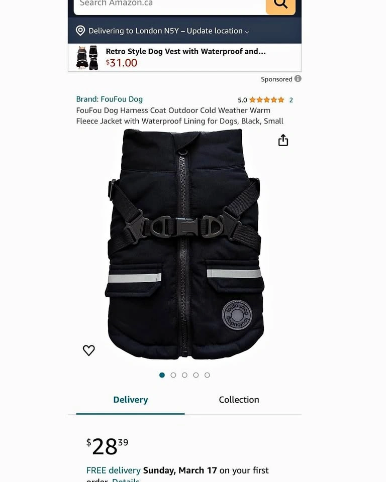 FouFou Dog Harness Coat Outdoor Cold Weather Warm Fleece Jacket with Waterproof Lining for Dogs, Black, Small. Reinforced built-in harness Reflective strips for safety Lined with warm fleece. Waterproof lining. Easy step-in design Esthetically pleasing zipper closure Breed recommendation: small and medium breeds
