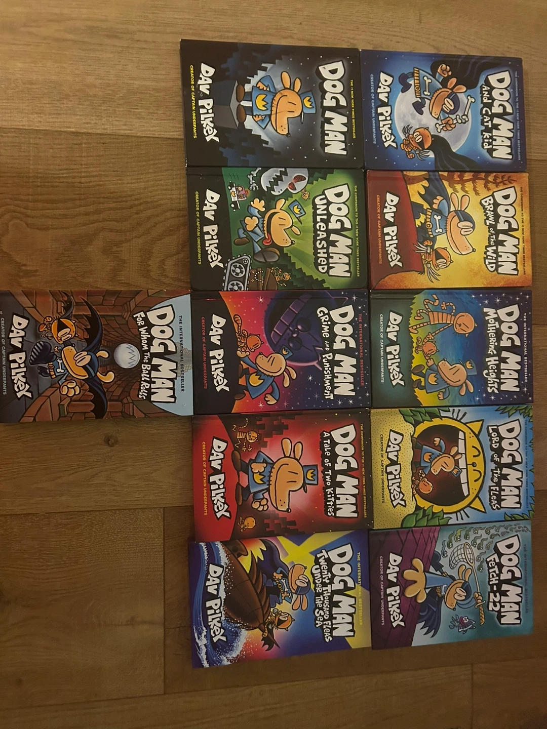 Selling the Dog Man books by Dav Pilkey! Great for kids who love a good laugh and adventure. Each book is filled with fun illustrations and engaging stories. selling each for $10 or all for $110.