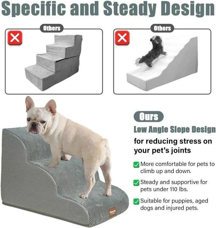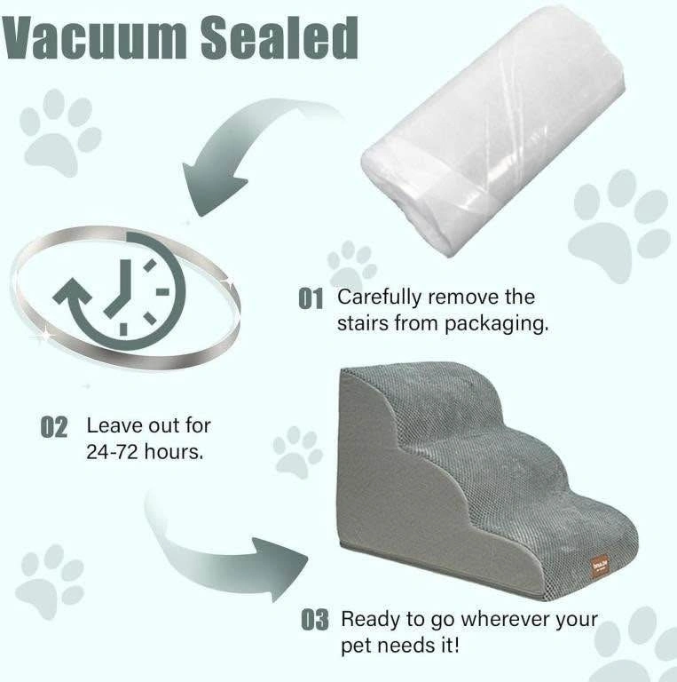 Brand new in packaging. The sturdy and stable stairs are designed so that your pet can walk steadily on them to the bed or couch for a close encounter with you. Perfect for small dogs, senior dogs, or pets with limited mobility with the non slip bottom. Vacuum sealed so allow 24-72 hours to get to shape.