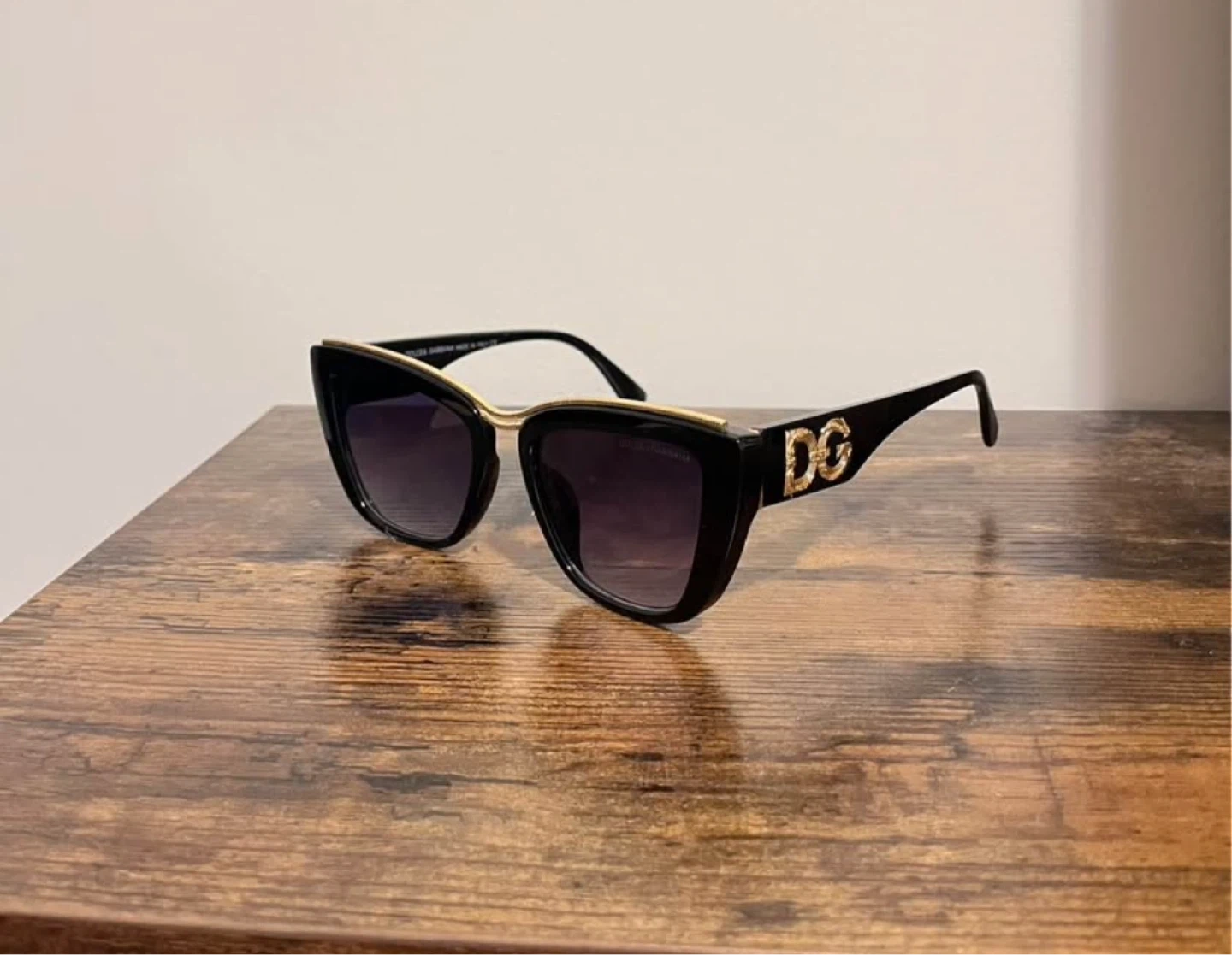 Selling a pair of Dolce & Gabbana sunglasses in black. They feature the iconic DG logo on the sides. They are in great condition and ready for a new home