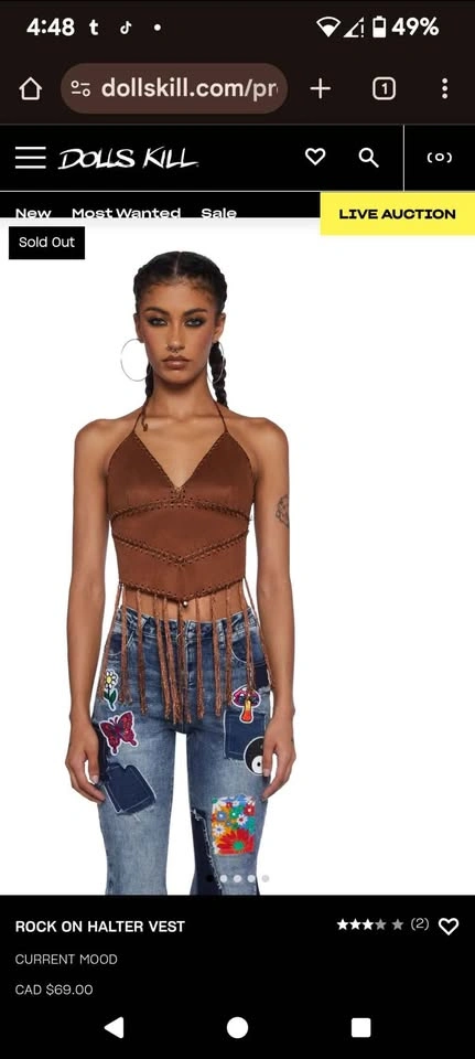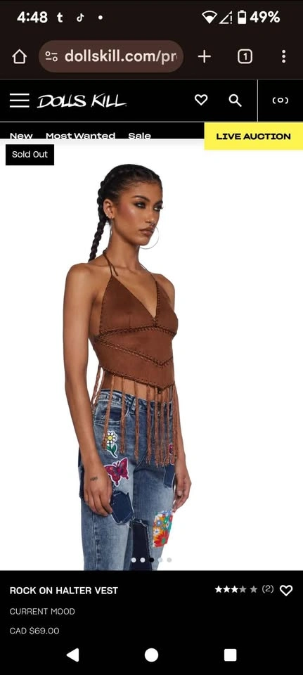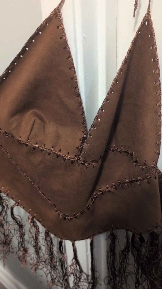 Sold out online Brand new with tags Size XXL This halter vest has faux suede construction, a V-neckline, detailed stitching, fringe detailing, and neck and back tie closures. Perfect for partying, raves, a cowgirl look (Halloween is coming up) or simply everyday wear Check out my other listings!!! Pickup in Hamilton anytime Pickup Toronto Union station (only out that way once or twice a month)