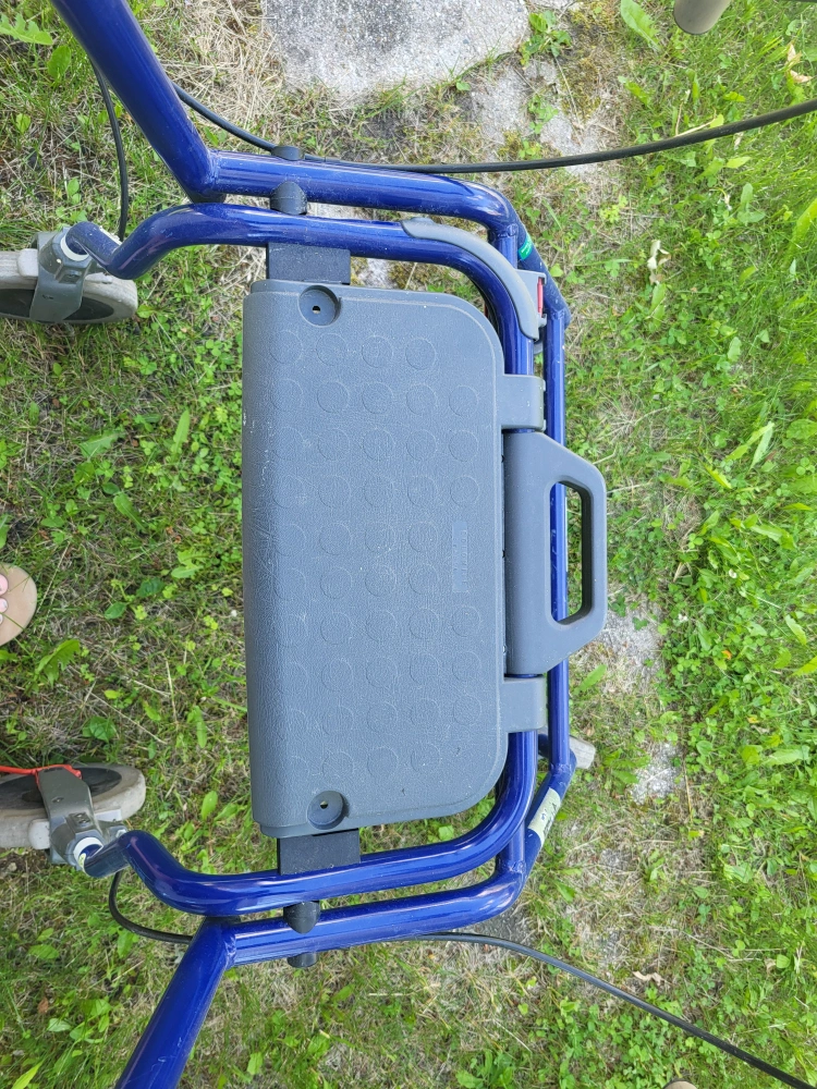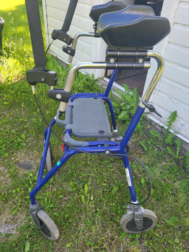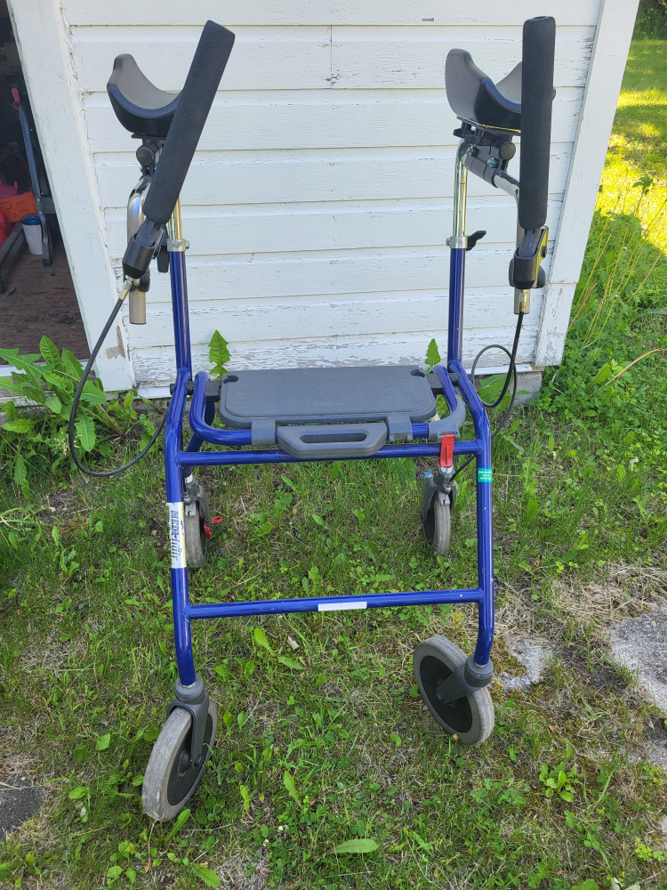 The Dolomite Alpha walkers address the needs of anyone who cannot use the standard hand grip or brake handle. The forearm pads provide support from elbow to wrist. A variety of adjustments can be made to angle, height and distance for the forearms pads and brake handles. The seat allows you to turn around and rest along the way. The Alpha Advanced has a cushioned handle on a ball joint. Braking can be accomplished by pushing or pulling depending on the joint setting. Alpha has a welded steel frame and rolls smoothly on 8" high friction indoor/outdoor wheels. A flip-up seat gives more space for your stride. The walker folds for easy storage. Includes removable basket with carry handle. can deliver to winnipeg or other close regions