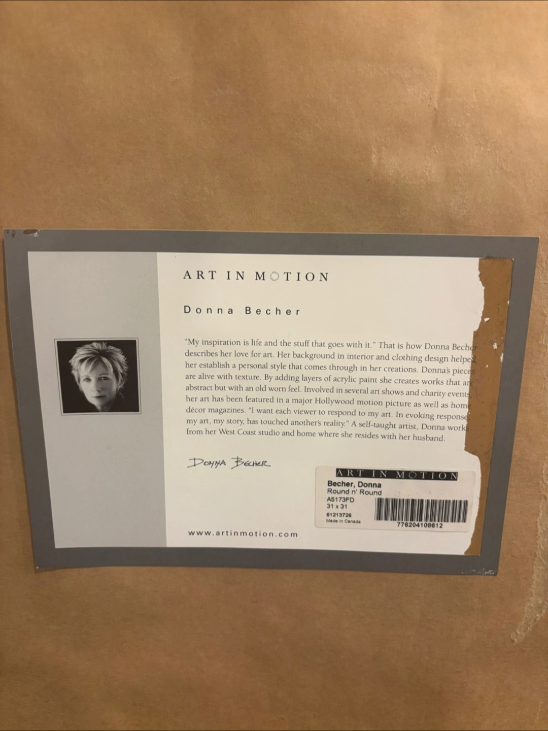 Selling a framed print by Donna Becher called 'Round 'N Round' from Art in Motion. The size is 31 x 31. It's a lovely piece that would look great in any home!