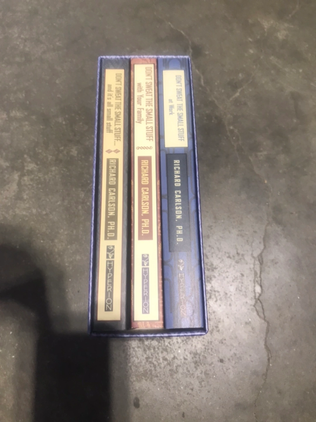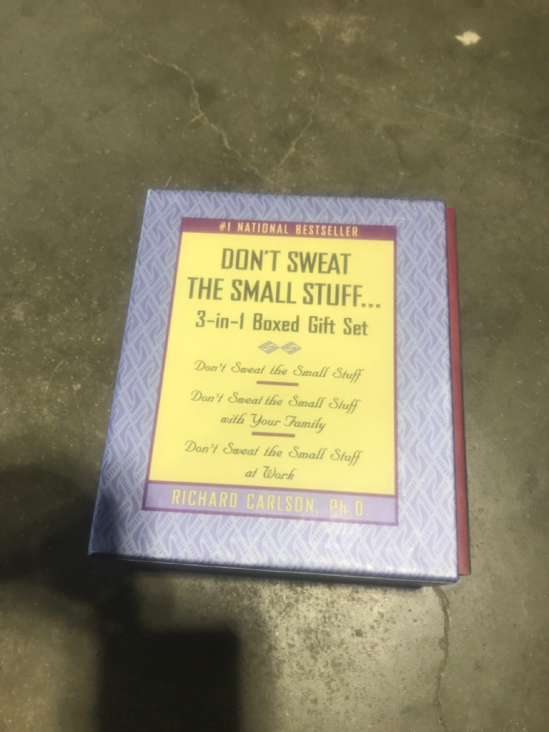 Selling a 3-in-1 boxed gift set of "Don't Sweat the Small Stuff" by Richard Carlson, Ph.D. Includes "Don't Sweat the Small Stuff", "Don't Sweat the Small Stuff with Your Family", and "Don't Sweat the Small Stuff at Work". It's a #1 National Bestseller! Retails for $49.99 No holds FCFS x posted Cash and pickup only