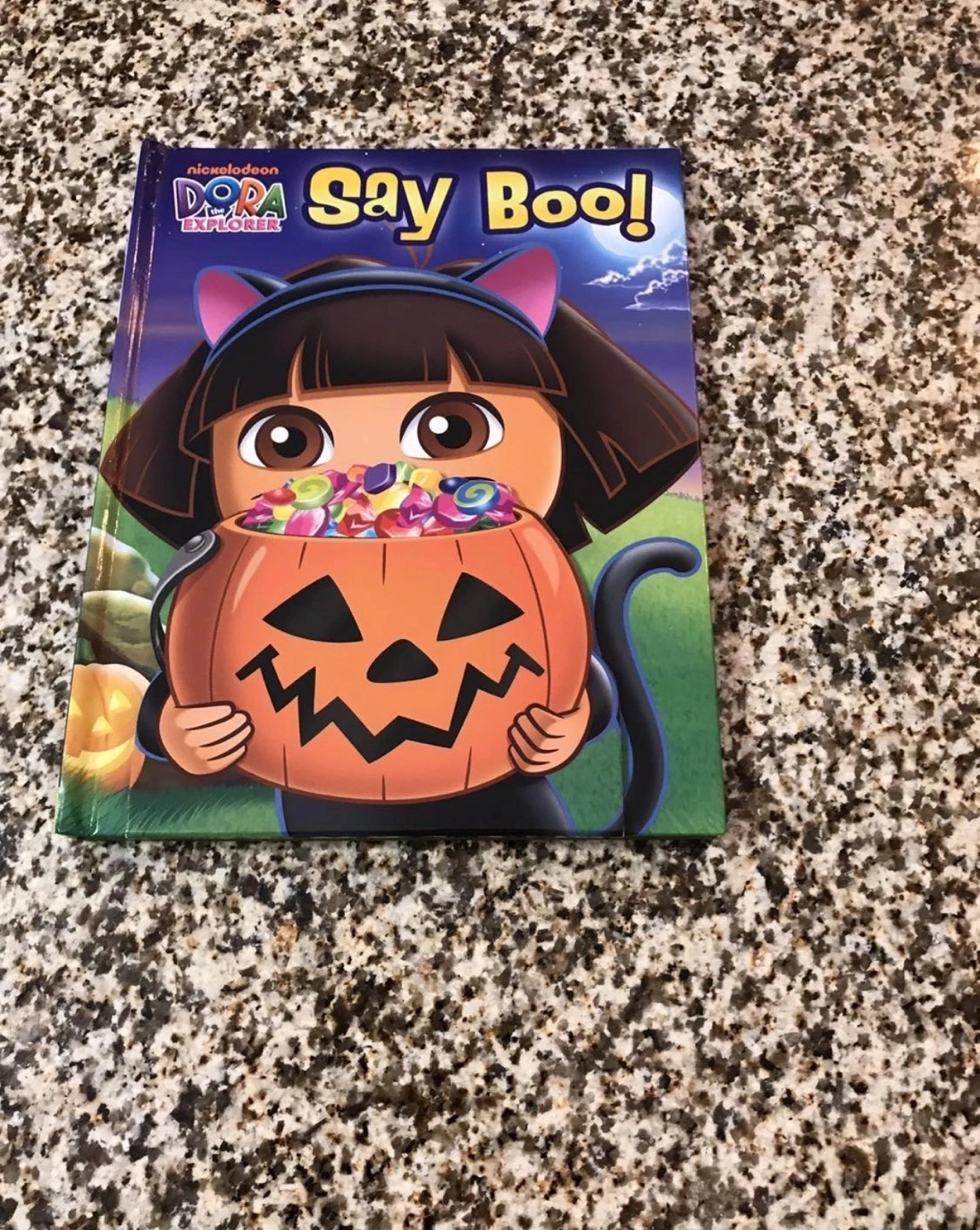 Dora Halloween board book. Great for early readers. Added interest with pop-up pages. Smoke free and pet free home. PU Simcoe & Conlin Comes from a smoke free and pet free home Pick up Windfields (North Oshawa)