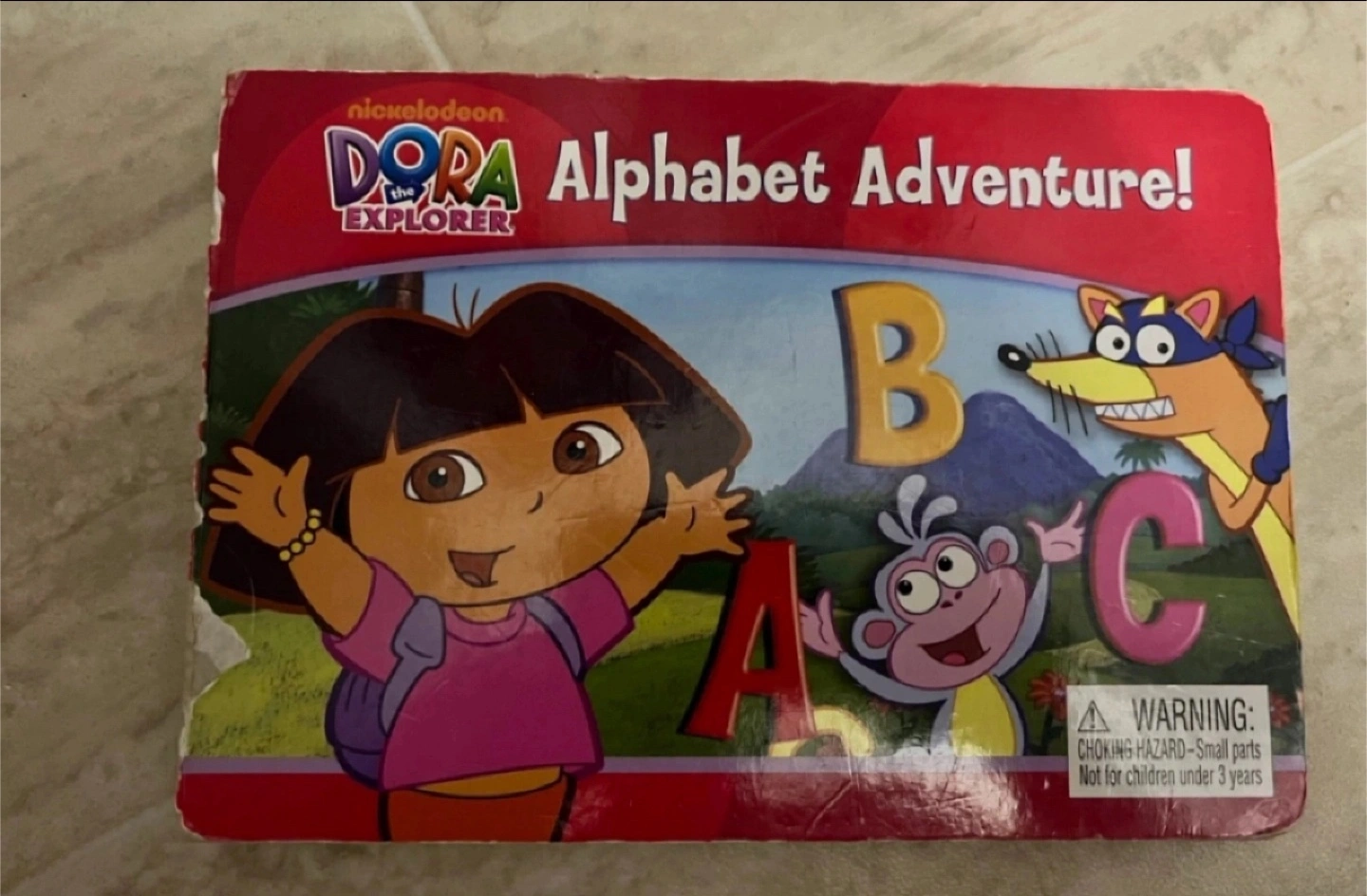 Giving a Dora the Explorer Alphabet Adventure book! It's a fun way for kids to learn their ABCs with Dora and her friends. Perfect for young children who love Dora!