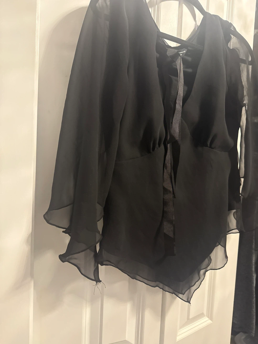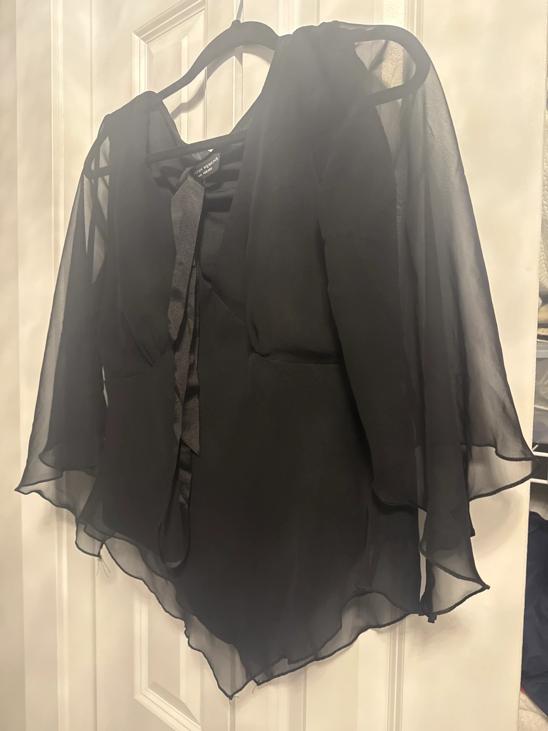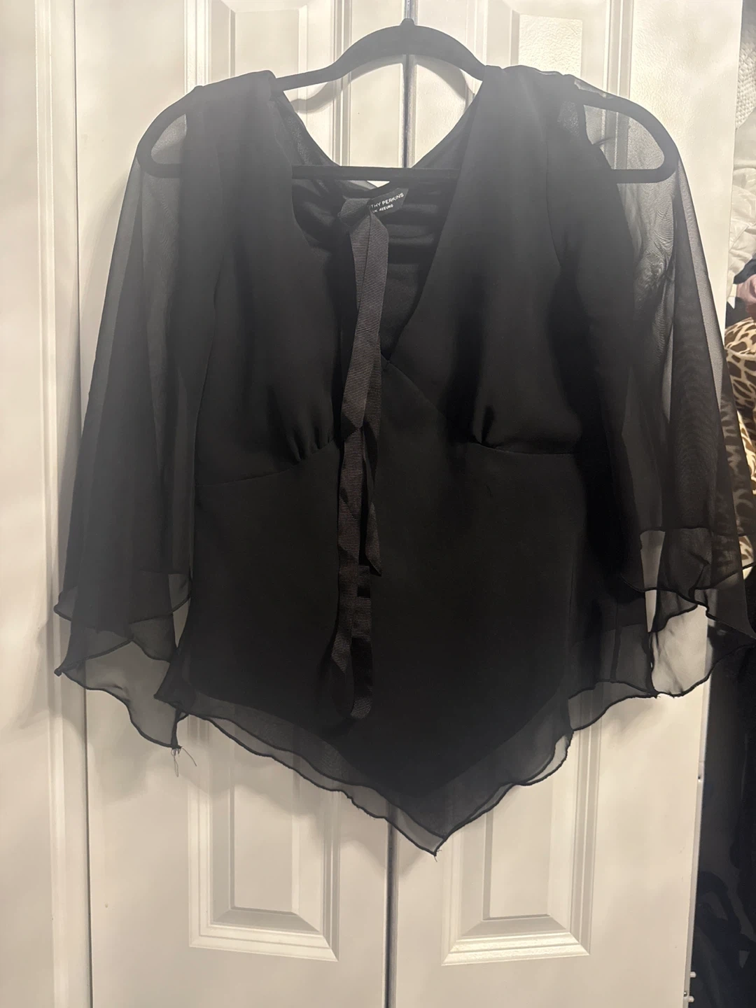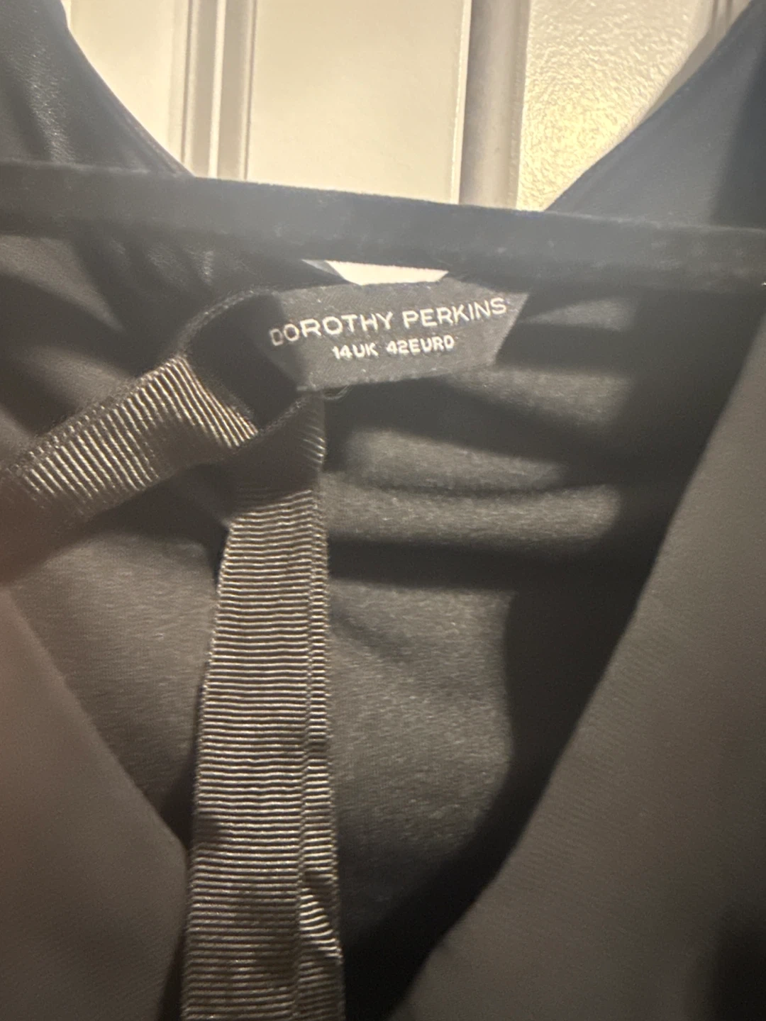 Selling a Dorothy Perkins blouse in black. It's a size 14 UK/ 42 Euro. Perfect for a night out or a special occasion!