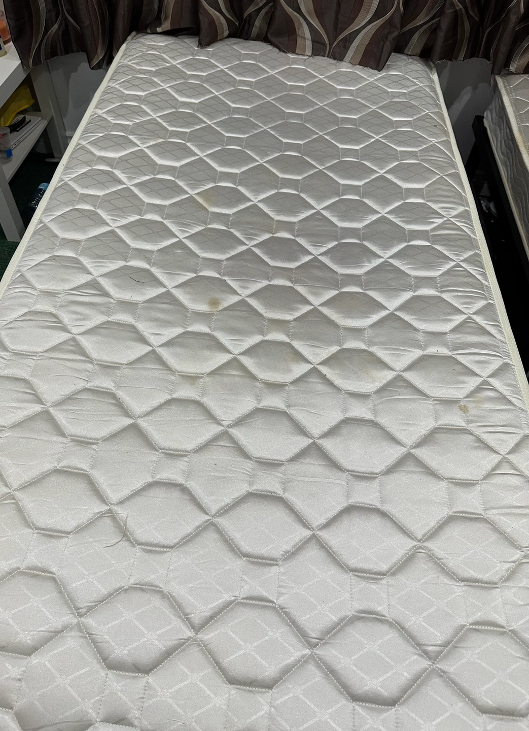 Queen mattress and one single mattress with frames available. If want to single by it self its $200with frame and if you want to buy double mattress itself with farme is $300. For both all together with frames get in $450 with frames.