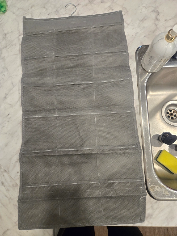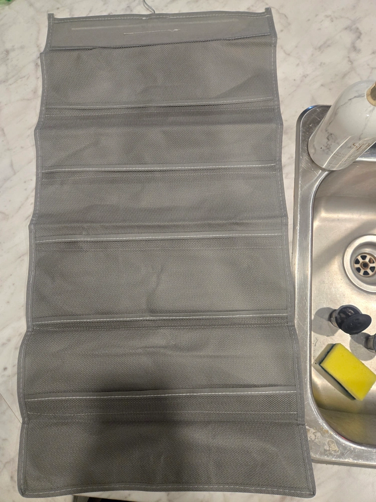 It's great for tidying up closets, pantries, or even bathrooms. The organizer is made of a breathable mesh material and has multiple pockets to store shoes, accessories, or other items. It's in great condition and easy to install with the included hooks