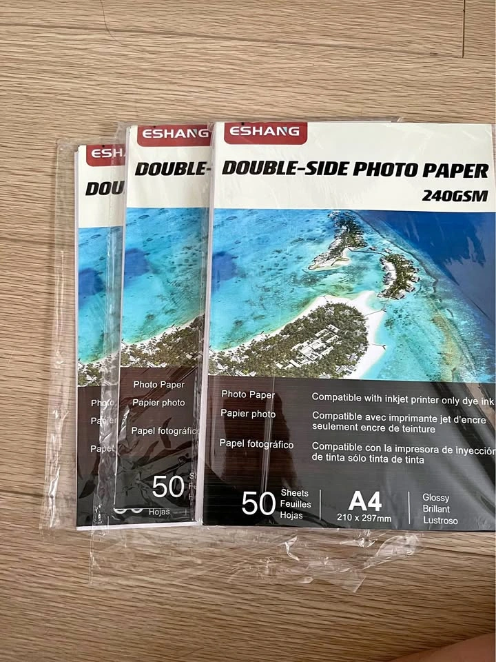 Thick double sided photo paper 240 GSM. Used some sheets to make booklets, party hats, gable boxes. Has about 100+ sheets left. Each pack bought for $20 each, selling everything for only $35.
