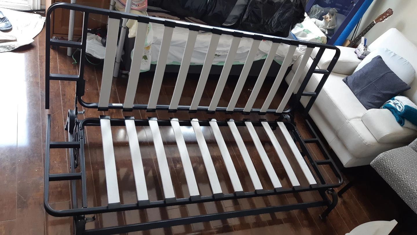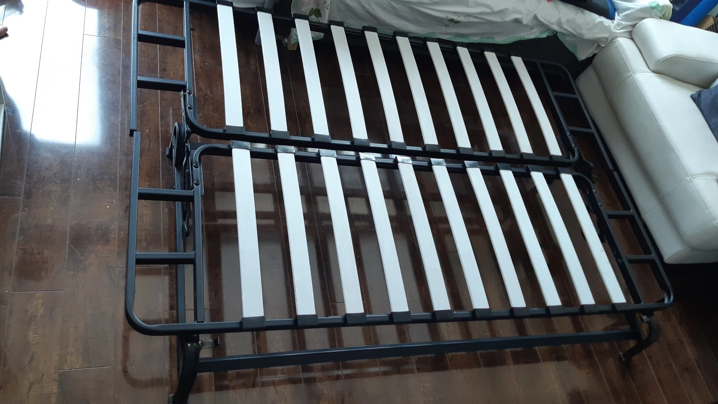 see all photos for details excellent condition IKEA strong metal bedframe with removable wood slats, it is very clean and ready to use. it can be use as a sofa bed , or as a double size bed frame or single bedframe I have an IKEA double size mattress available for sale in like new condition. clean washable cover. no stain use only few months SFPF home pickup near Jane st and Rutherford rd Vaughan