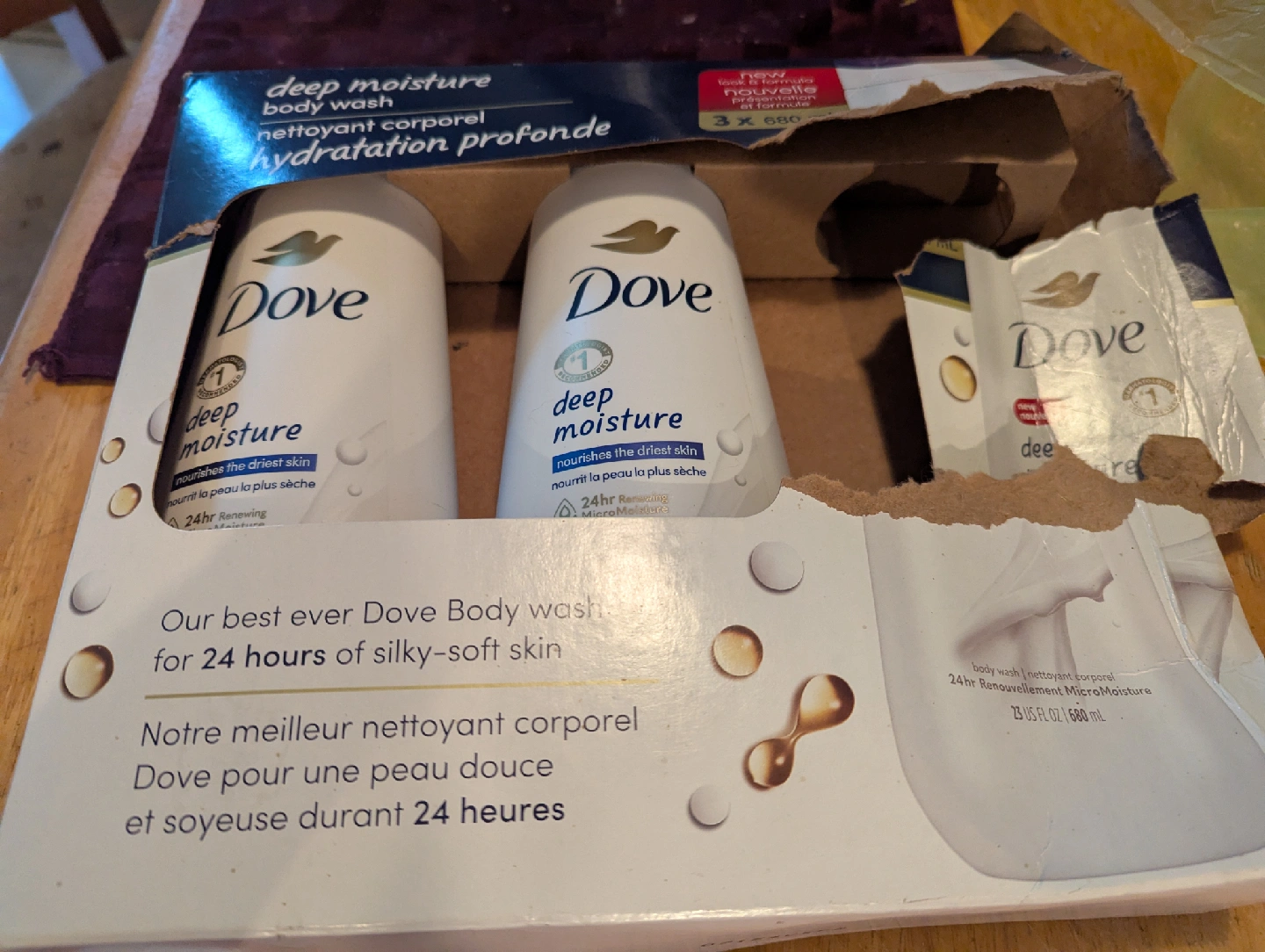 Selling a pack of Dove Deep Moisture Body Wash! This pack contains 3 bottles, each 680ml. It's Dove's best ever body wash, providing 24 hours of silky-soft skin. The box is included! 2,full unopef bottles from Costco
