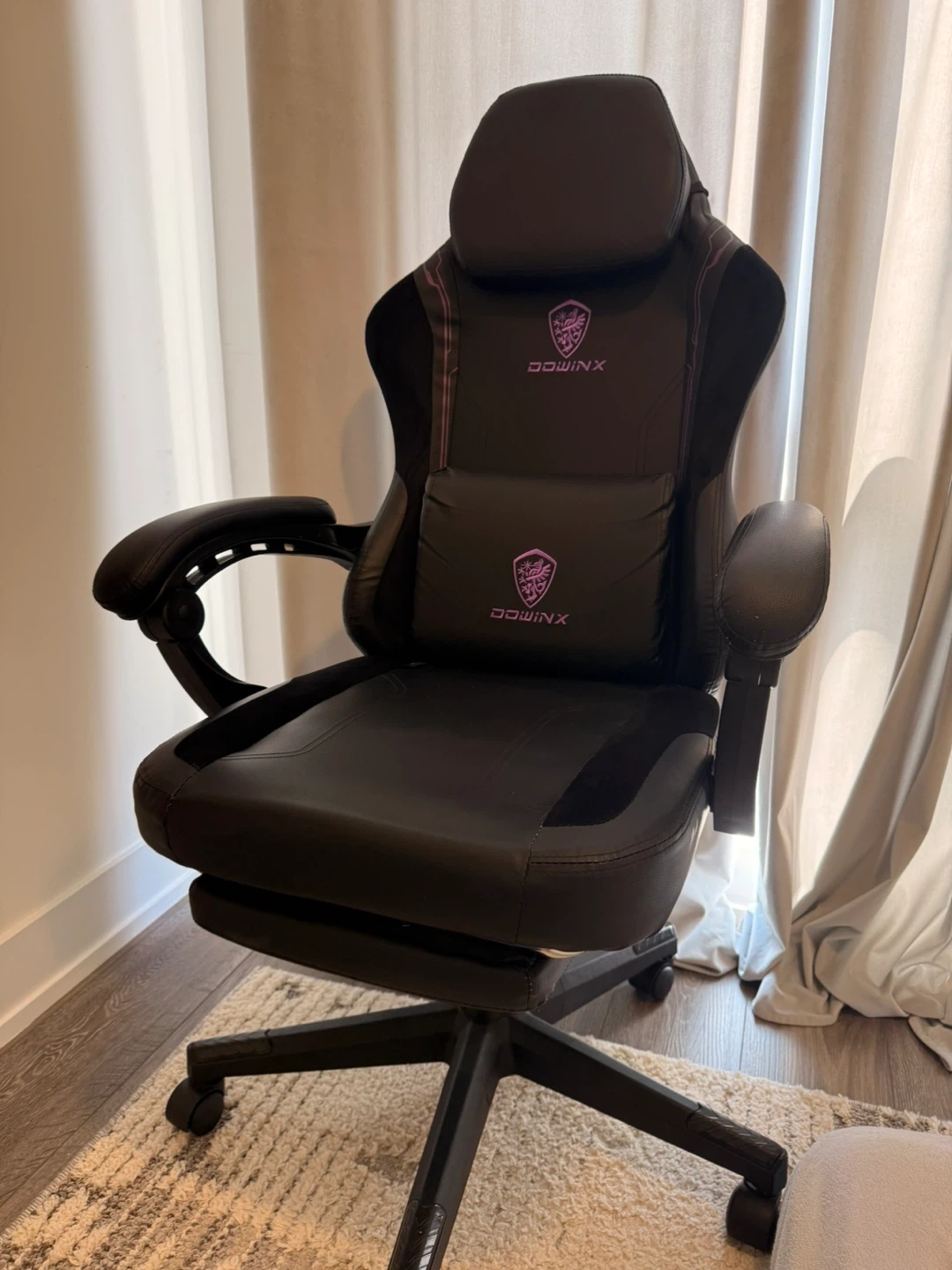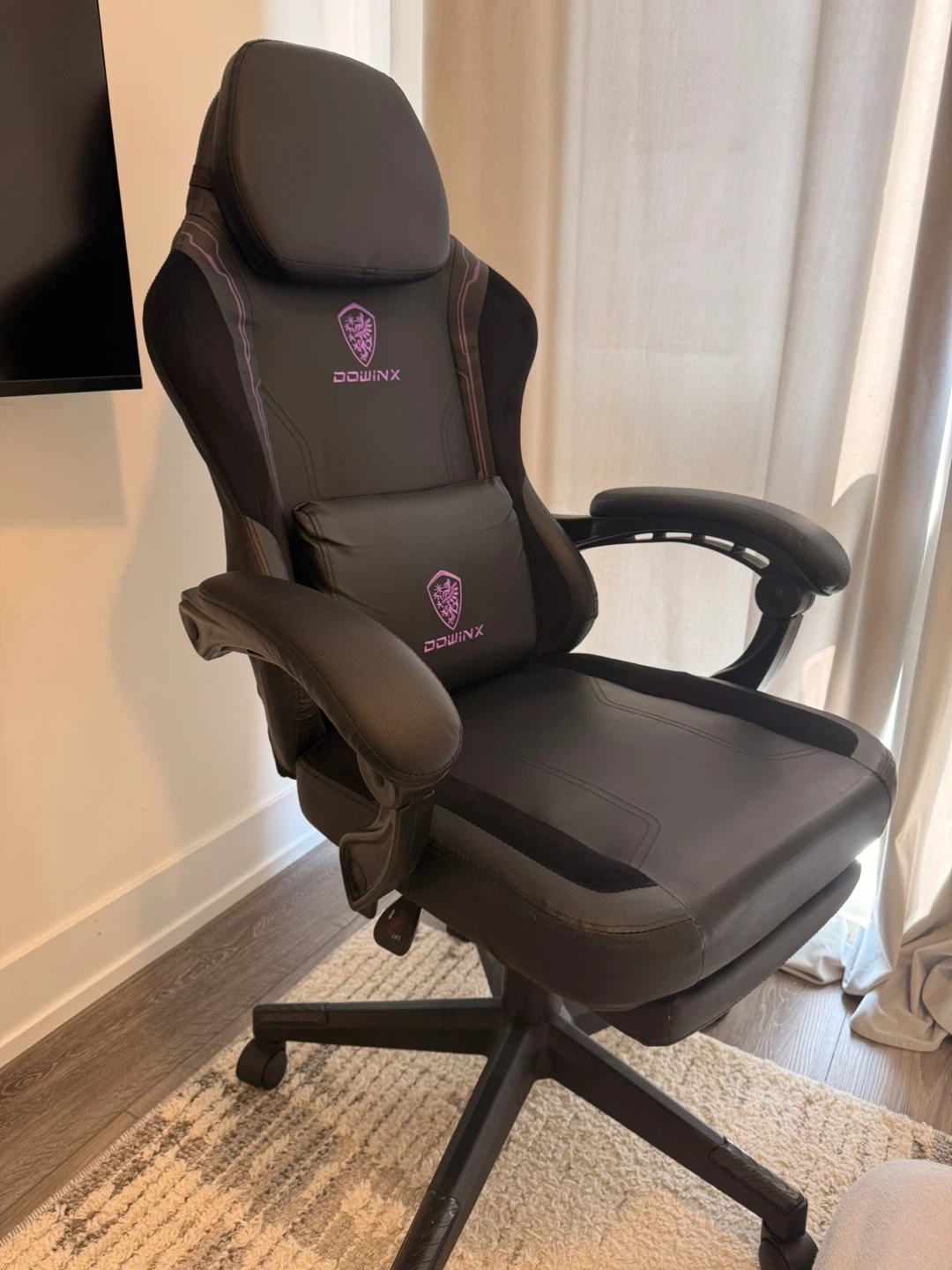 Selling a Dowinx gaming chair in black. It comes with a footrest for extra comfort during those long gaming sessions or work days. The chair is in great condition and ready for a new home!