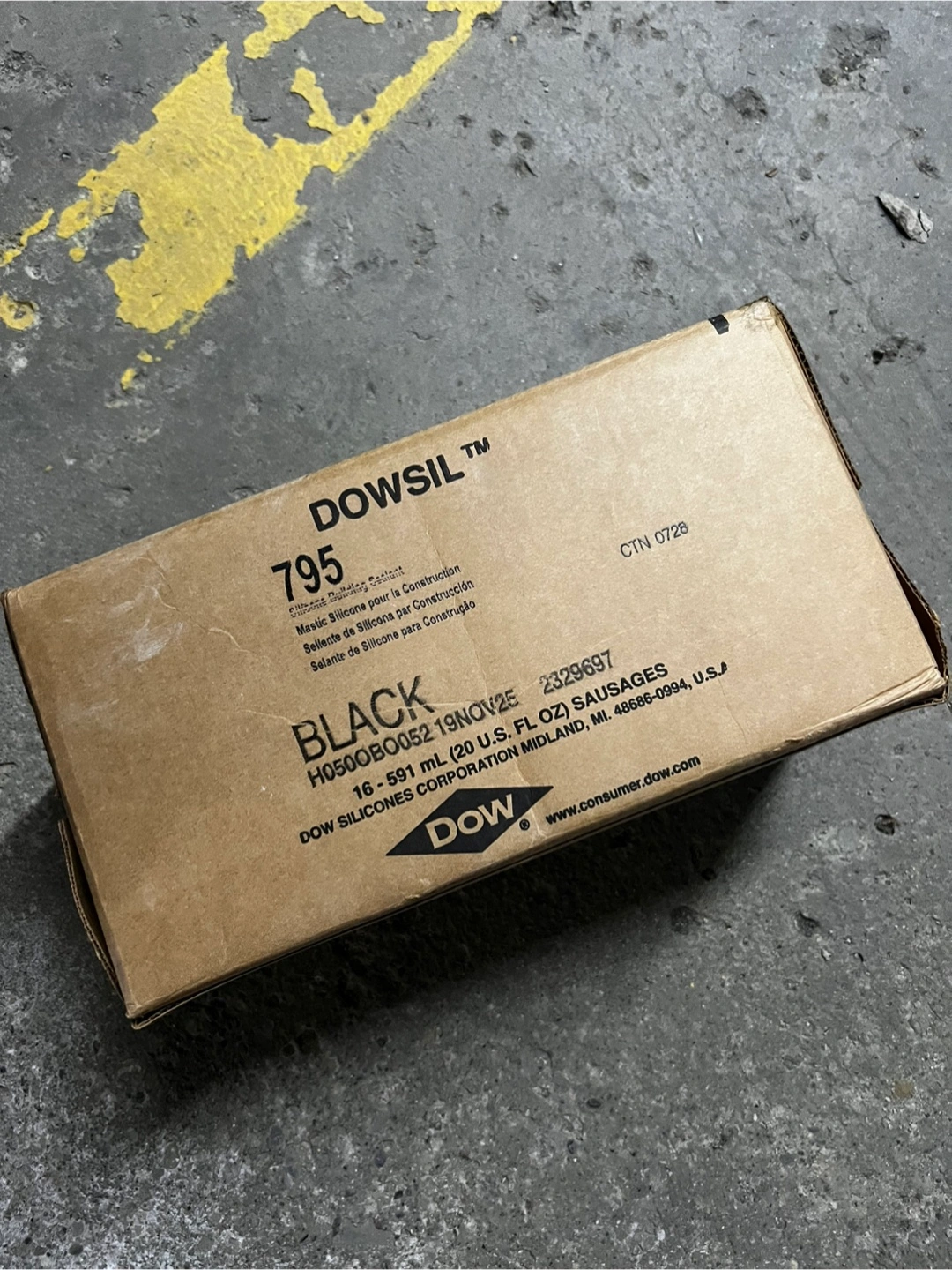 Selling a brand new box of Dowsil 795 Black Silicone Sealant. It's a mastic silicone sealant for construction. Each sausage contains 16 - 591 ml (20 U.S. fl oz). Original price $500+ Selling $180