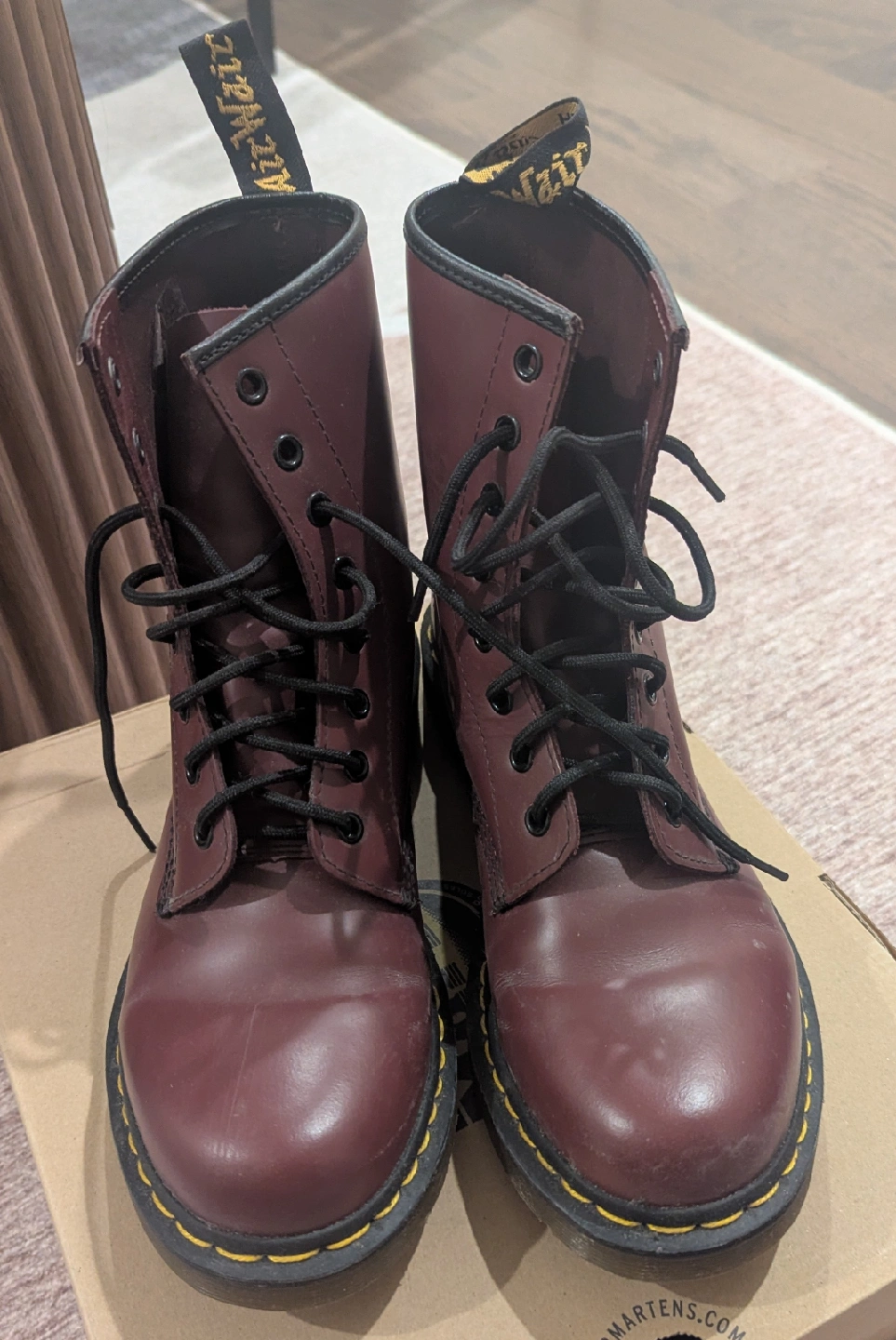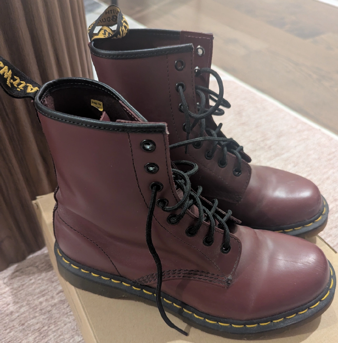 Selling a pair of Dr. Martens 1460 boots in Burgundy! The shoes are still in very good condition, with only 2-3 wears. Size 10 women's / 9 men's. Meet at Rideau Centre for pickup.