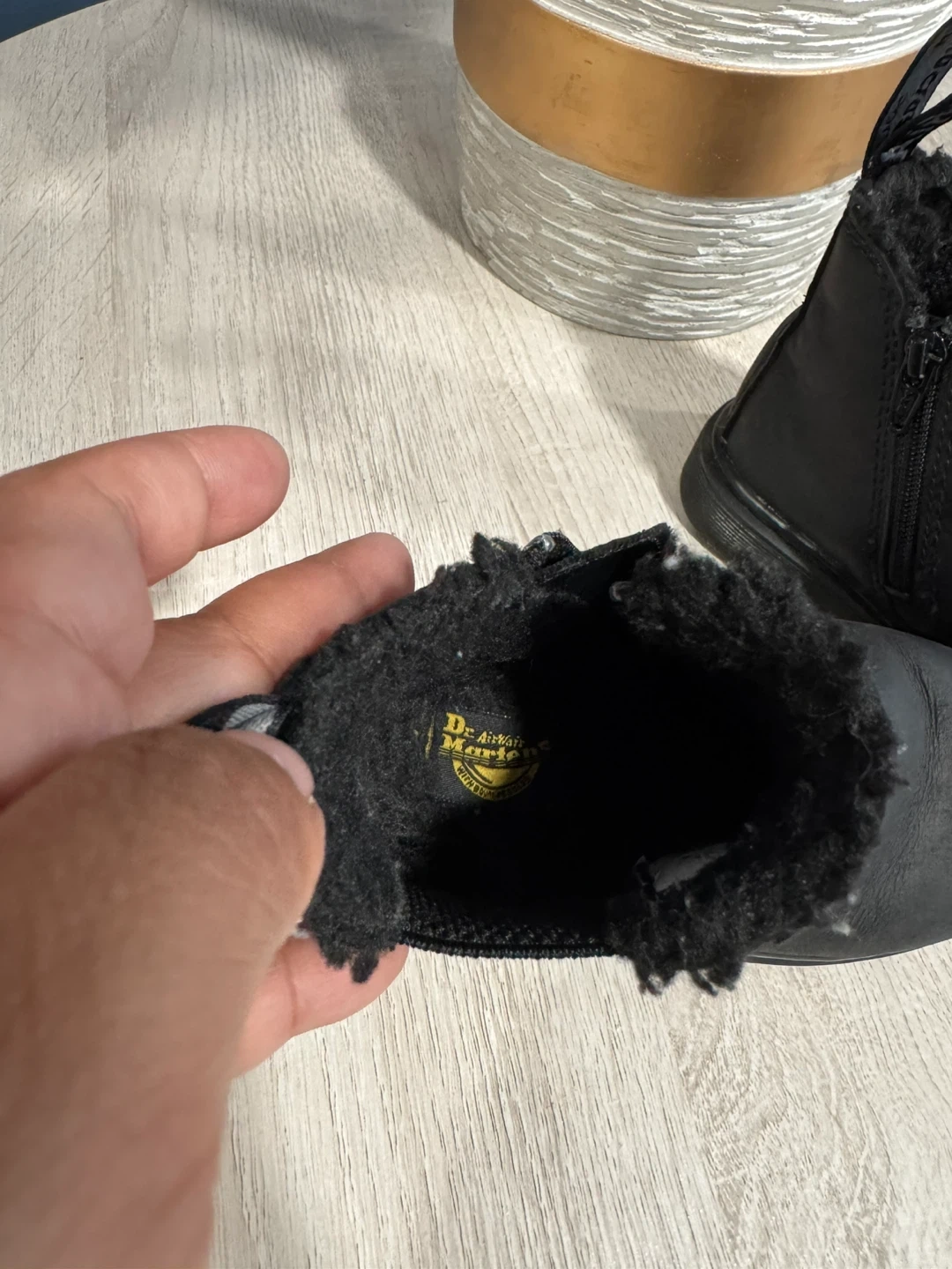 These Dr. Martens boots are perfect for keeping your feet warm and stylish! They feature a black leather exterior and a cozy fur lining. These boots have a zipper on the side for easy on and off. They are in great condition and ready for a new home!