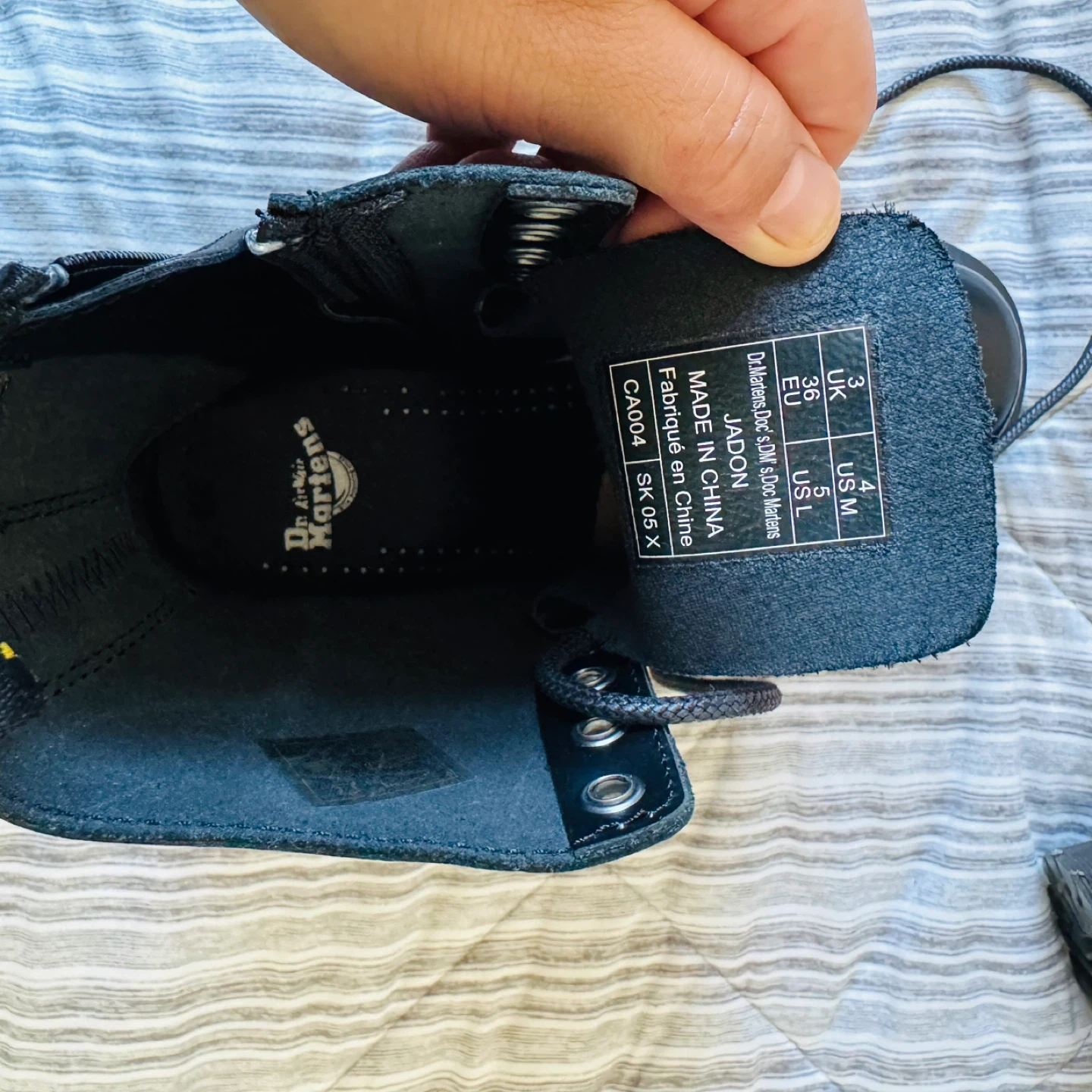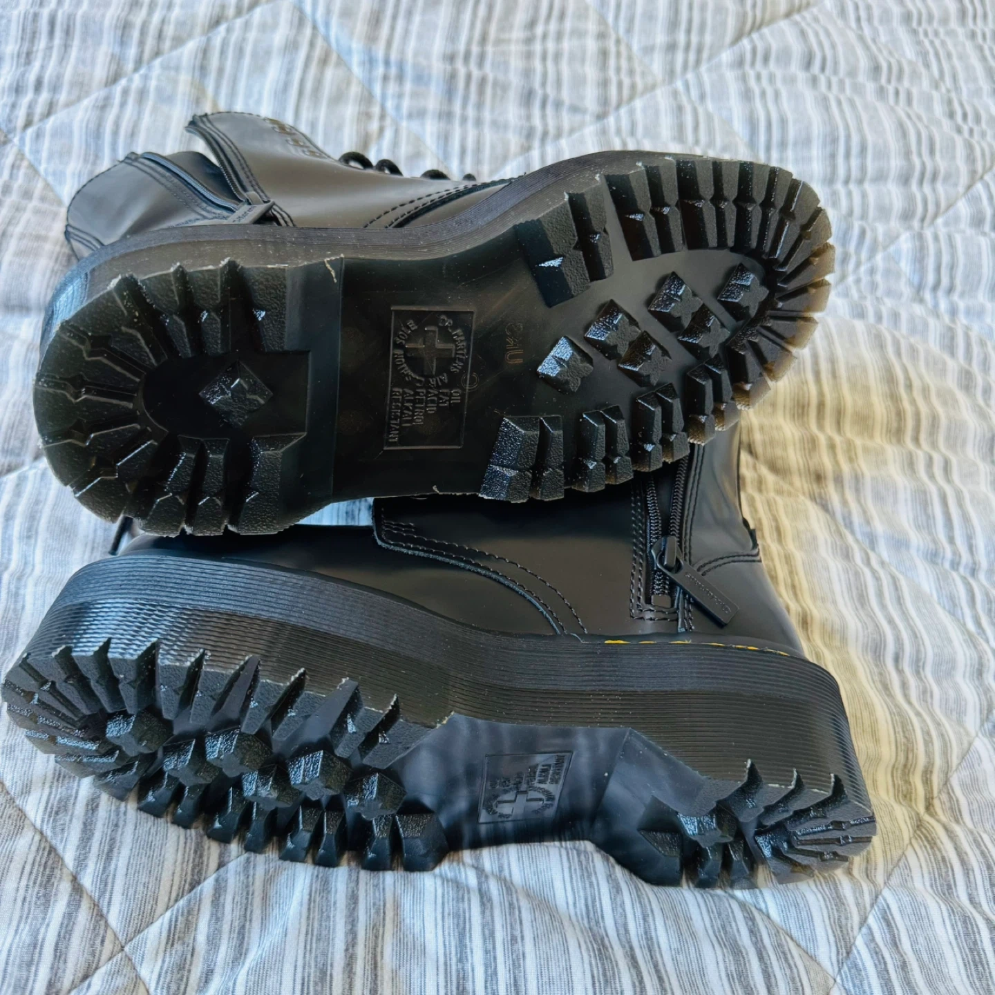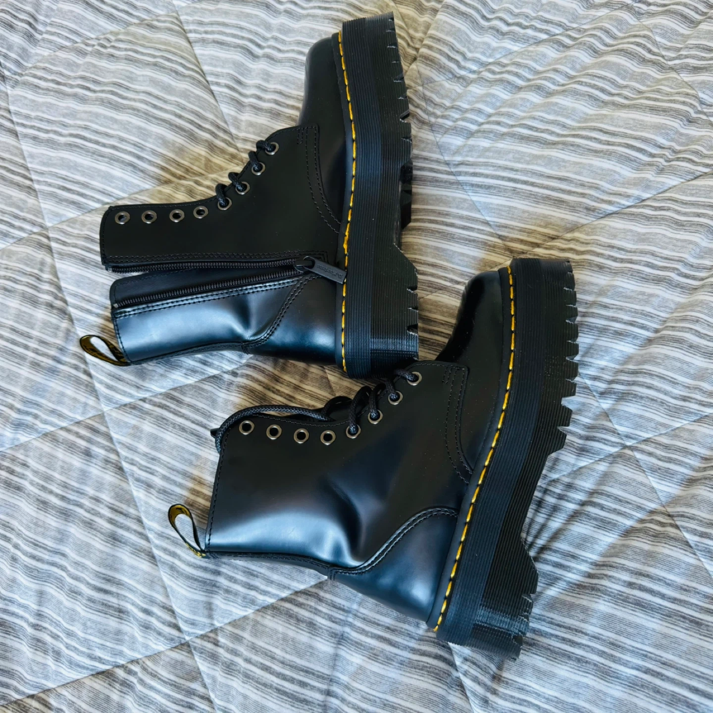 Selling a pair of Dr. Martens Jadon platform boots in black. They're in great condition, kids size 5. These boots have a cool, edgy look with their platform sole and classic Dr. Martens style. Perfect for adding some height and attitude to any outfit.