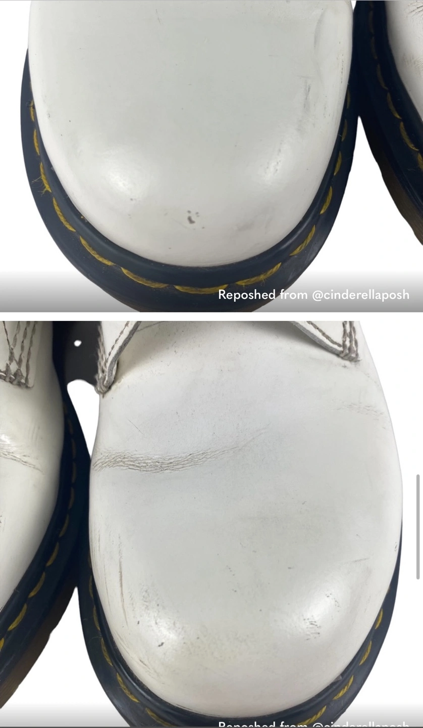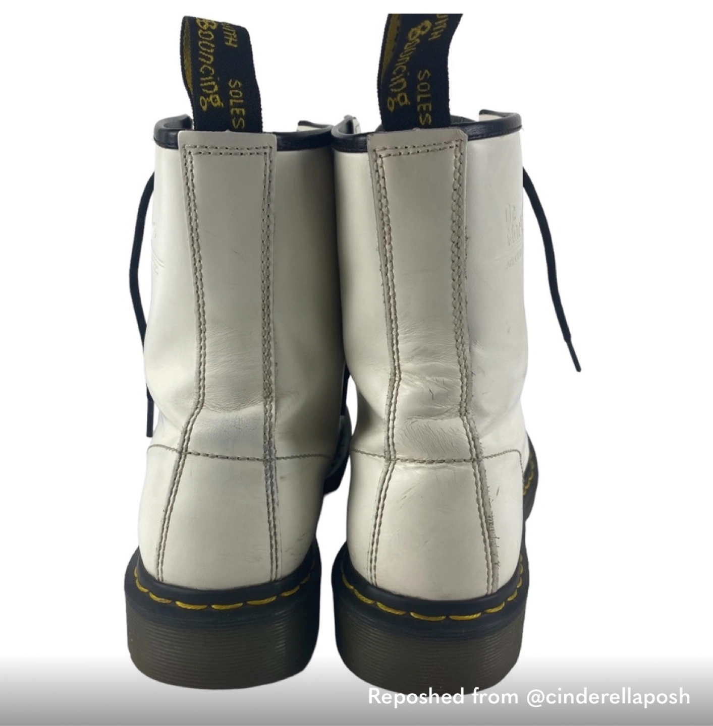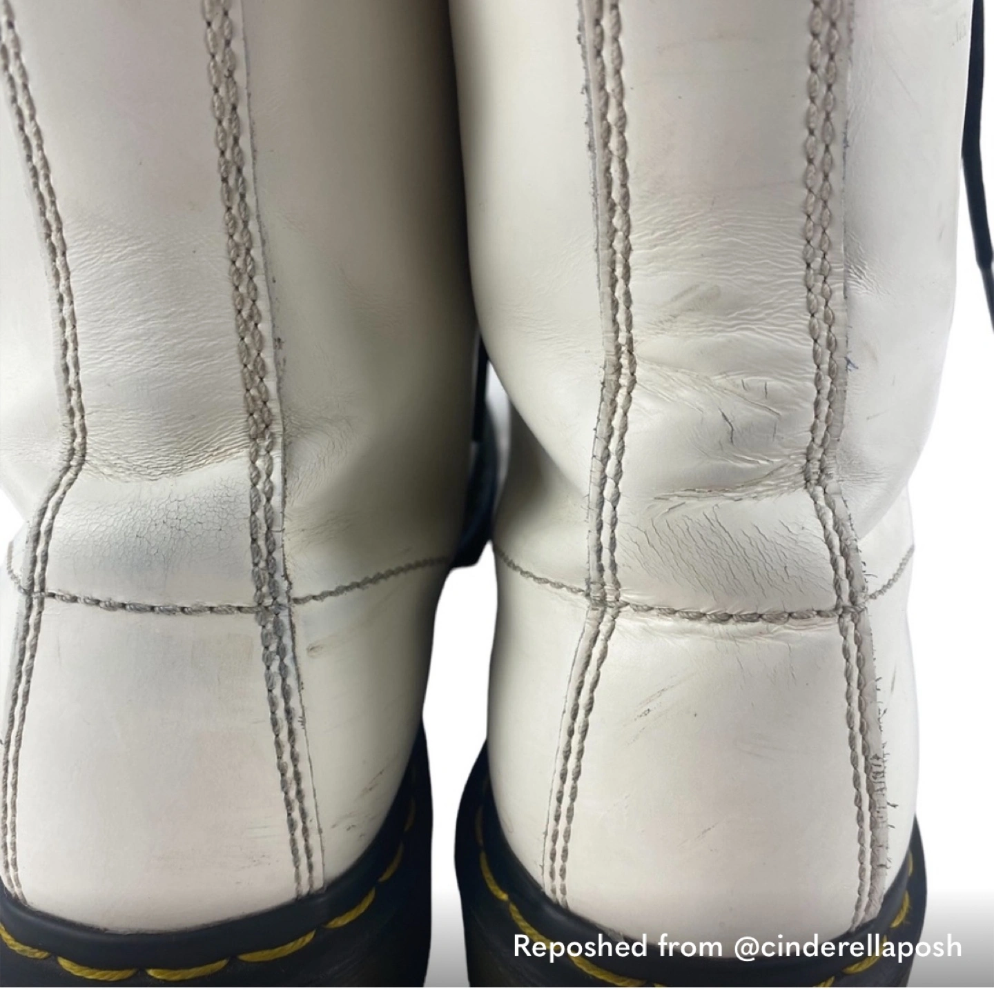 White leather Dr. Martens boots. Lace-up style. Size US 11. Women’s. Pre-owned. I got these off of Poshmark and they didn’t fit :(