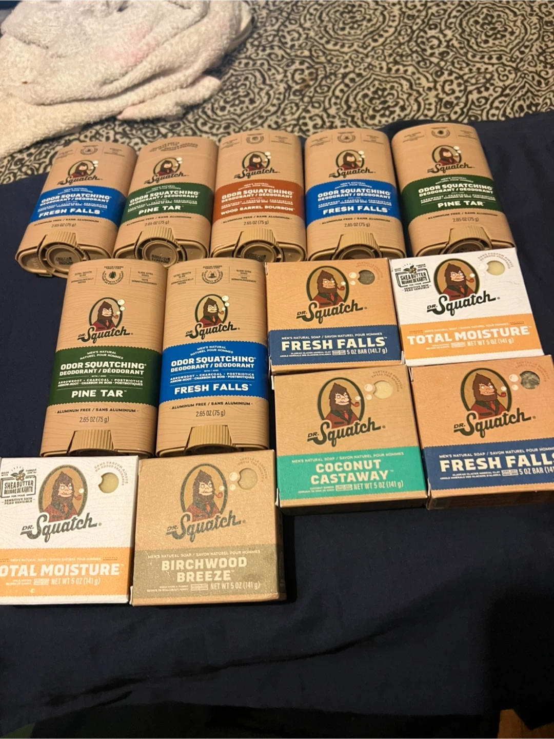 Selling a variety of Dr. Squatch Soap 5$ Deodorant 10$ Included are: - Fresh Falls Deodorant (2.65 oz / 75g) - Pine Tar Deodorant (2.65 oz / 75g) - Wood Barrel Bourbon Deodorant (2.65 oz / 75g) - Fresh Falls Soap (5 oz / 141.7g) - Total Moisture Soap (5 oz / 141g) - Birchwood Breeze Soap (5 oz / 141g) - Coconut Castaway Soap (5 oz / 141g)