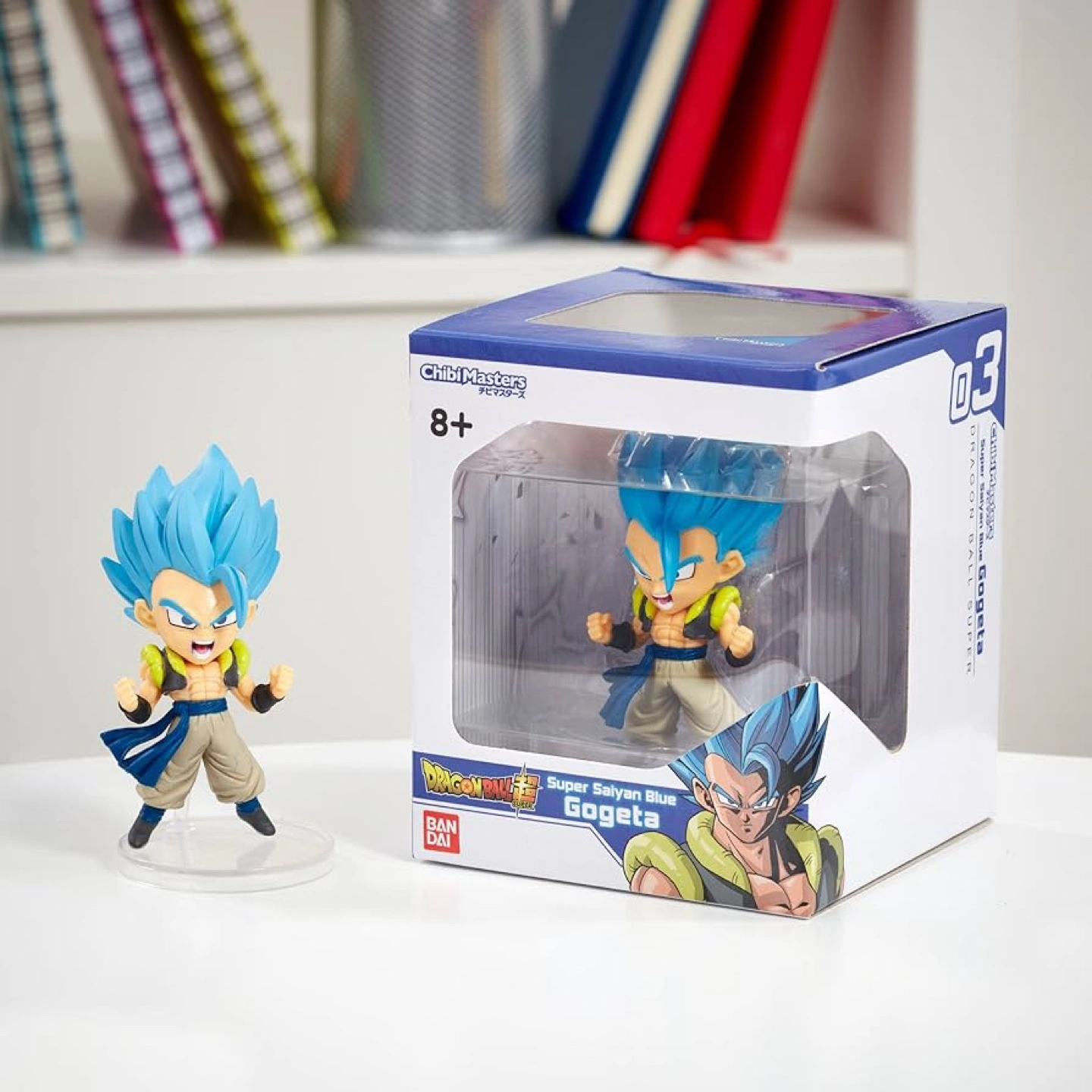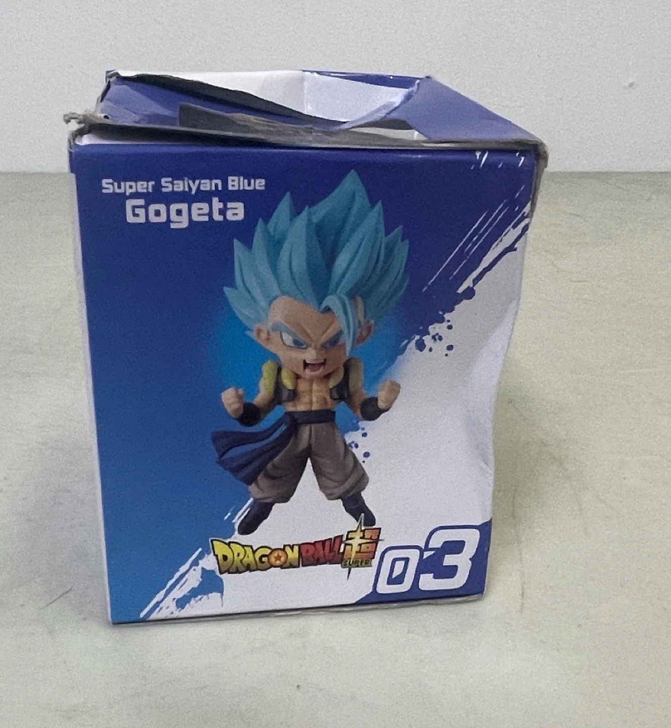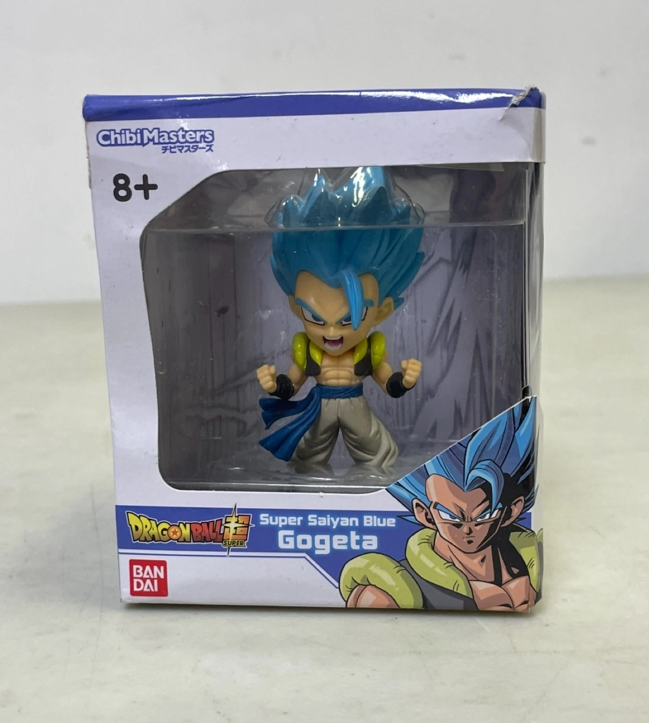 Collectible Dragon Ball Super figure. Gogeta Super Saiyan Blue. Part of the Chibi Masters series. Figure in box. Box shows some wear.
